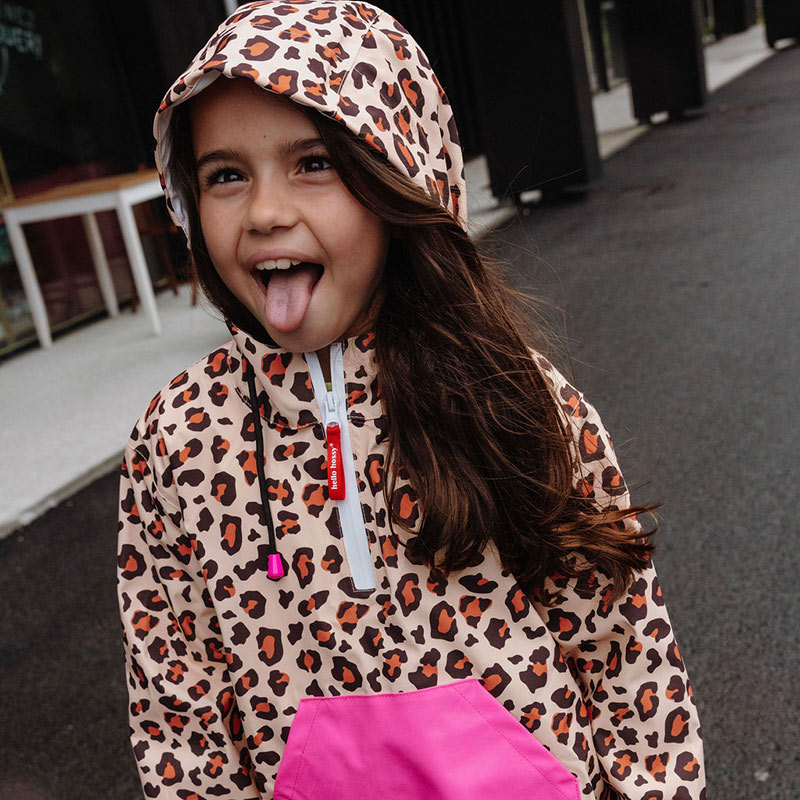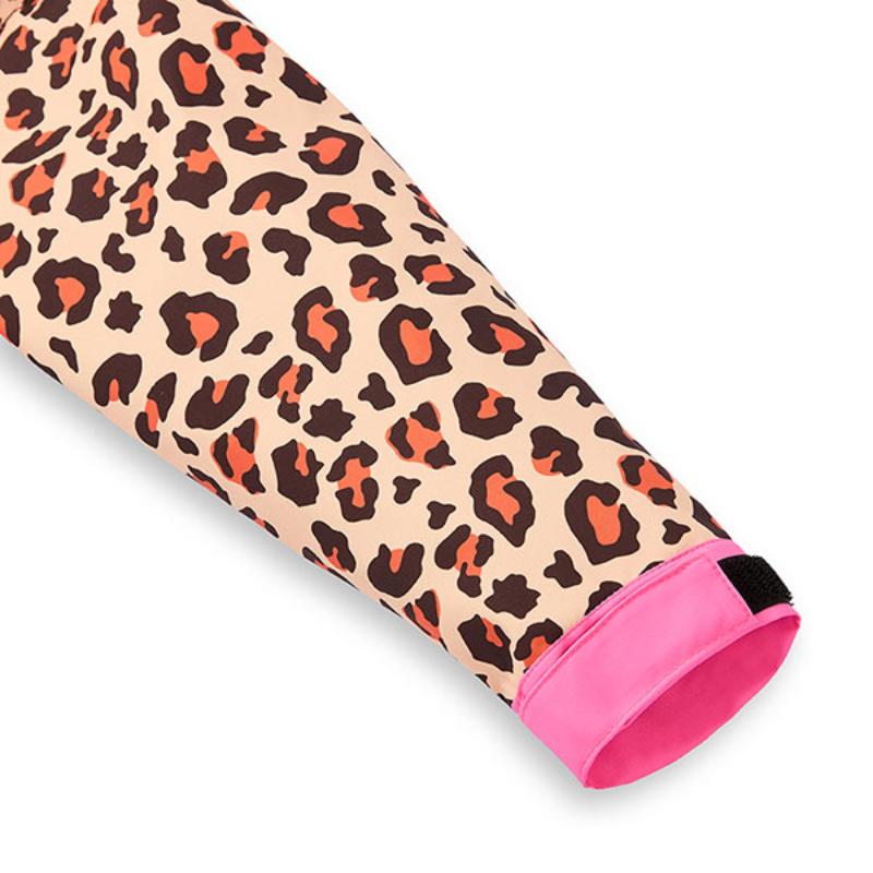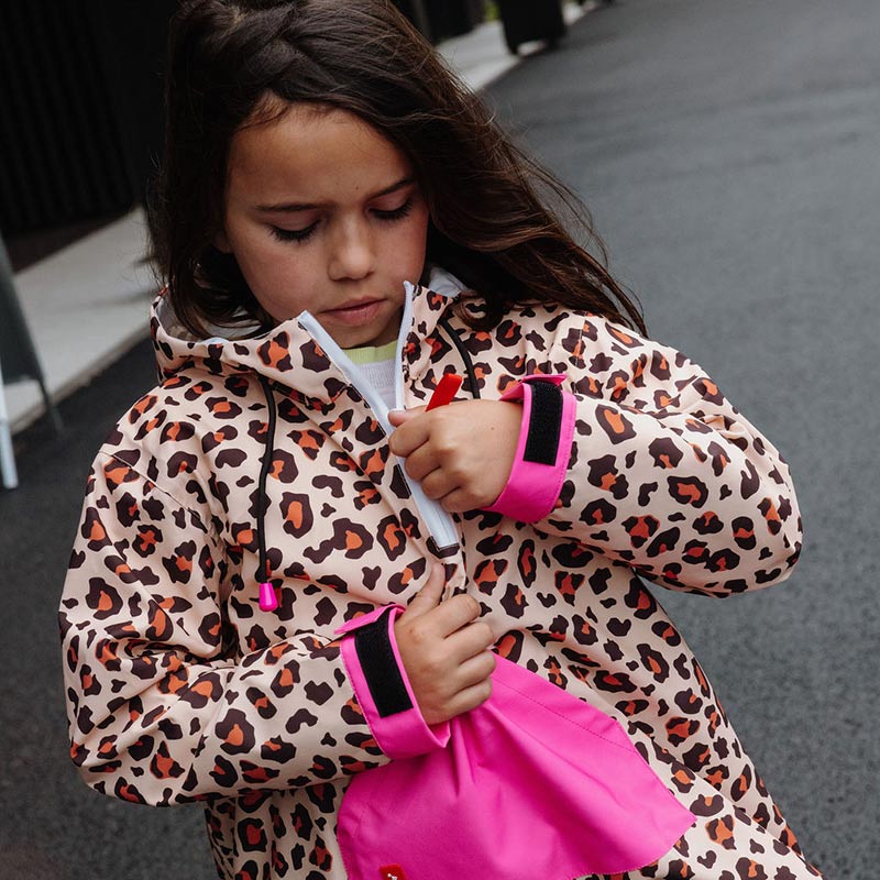 Лёгкое пончо с леопардовым принтом и розовыми акцентами. Водонепроницаемая ткань сертифицирована на показатель более 10 000 мм. Регулируемый капюшон со шнурком плотно прилегает к голове. Передний карман для мелочей или рук. Свободный крой позволяет надевать пончо поверх куртки. Компактно складывается в небольшую сумку для хранения.