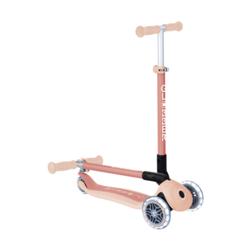 Практичный складной самокат в мягком персиковом оттенке. Отличается удобной конструкцией и легкостью в управлении. Подходит для ежедневных прогулок и первых самостоятельных поездок. Светящиеся колеса добавляют красочности в каждое движение, а устойчивость платформы гарантирует безопасность. Этот самокат помогает детям развивать координацию и любовь к активному образу жизни.