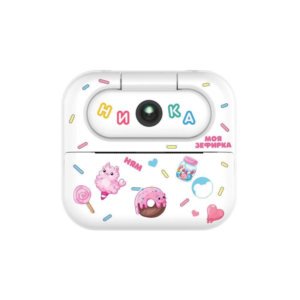 Яркий дизайн с пончиками делает этот фотоаппарат невероятно весёлым и запоминающимся. Он печатает фото сразу после съёмки и поддерживает печать со смартфона через Bluetooth. Такой гаджет превращает фотографии в маленькие сувениры: их можно приклеить в дневник, подарить другу или украсить комнату. С ним легко сохранить радость любого момента и поделиться ей с близкими.