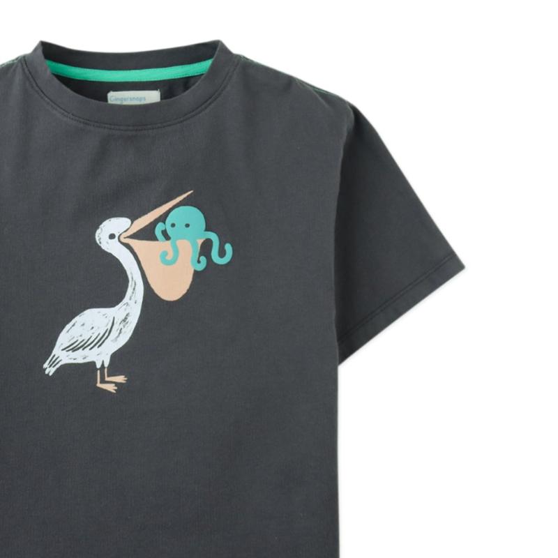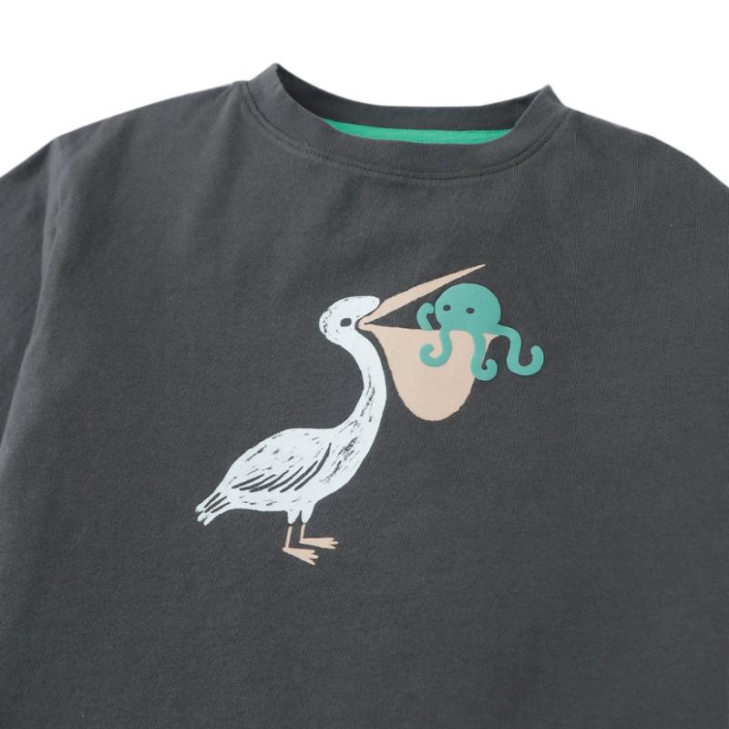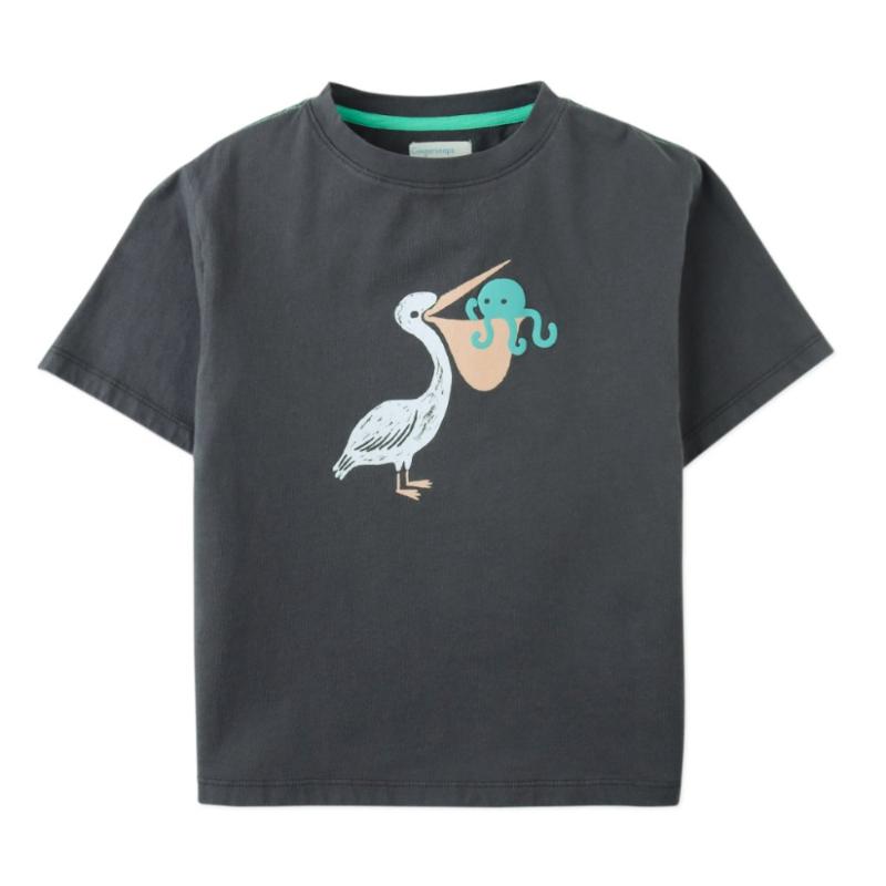 Серая футболка с принтом пеликана добавляет образу характер, оставаясь при этом сдержанной. Прямой крой обеспечивает комфорт и свободу движения. Модель подходит для повседневной носки и активных прогулок. Легко комбинируется с шортами и брюками, создавая простые и продуманные сочетания.