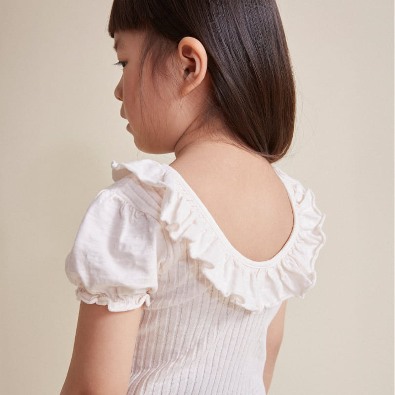 Эта футболка из трикотажа в рубчик с воротником цвета кремового пломбира — классический и универсальный элемент гардероба для маленьких модниц. Воротник добавляет изысканности, а нежный кремовый оттенок делает футболку легкой для сочетания с другими вещами. Она идеально подходит как для прогулок, так и для более формальных мероприятий, создавая стильный и элегантный образ. Прочный и мягкий материал дарит комфорт в течение всего дня, обеспечивая долгий срок службы.