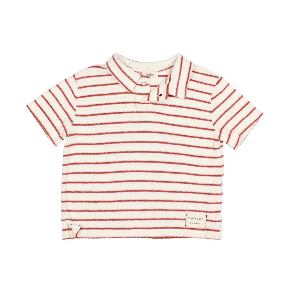 Эта футболка-поло с коралловыми полосками — идеальное сочетание стиля и комфорта. Махровая ткань мягкая на ощупь, отлично подходит для теплых и прохладных дней. Коралловые полоски на белом фоне придают изделию динамичность и натуральность, делая футболку не только удобной, но и модной. Эластичный воротник и пуговицы создают классический стиль, который легко сочетается с шортами, брюками и джинсами.