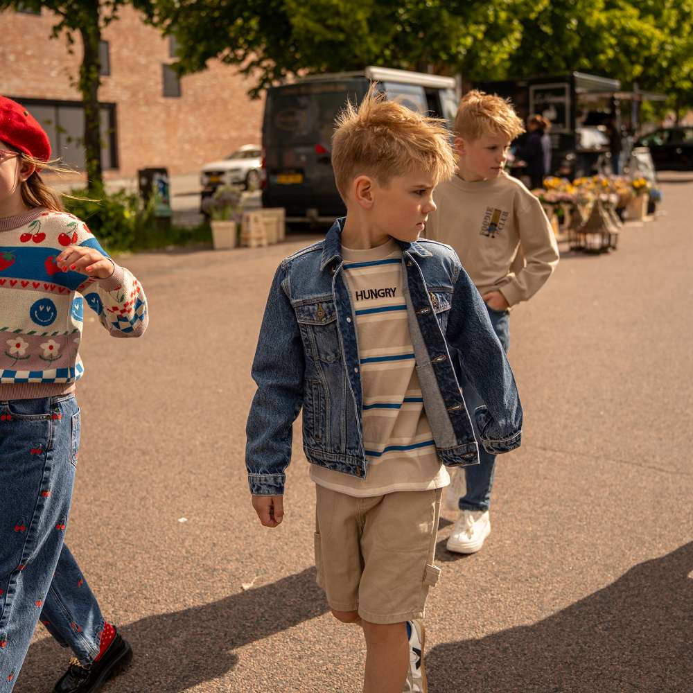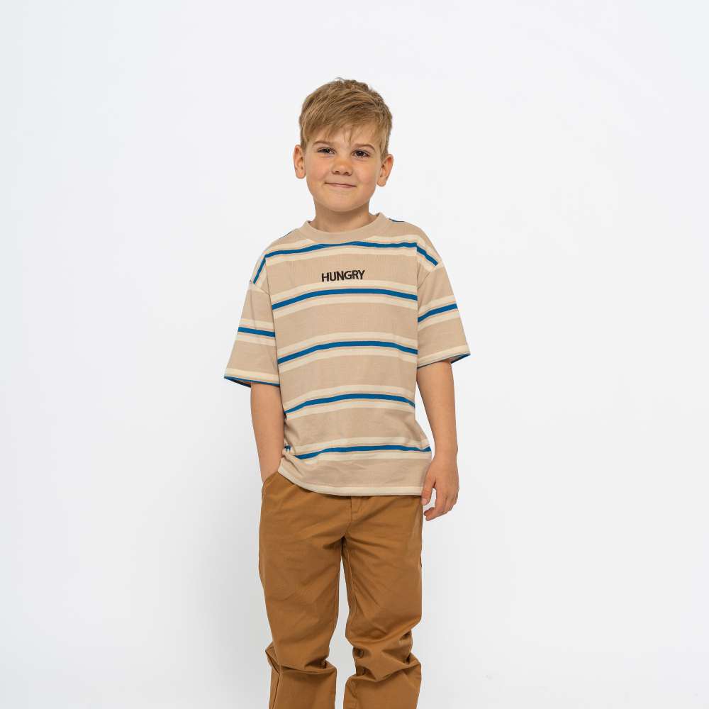 Эта футболка с серыми полосками и легким дизайном станет стильным элементом повседневного гардероба вашего ребенка. Она выполнена из мягкого материала, который идеально подойдет для теплых дней, обеспечивая комфорт и свободу движений. Стильные полоски на сером фоне добавляют свежести и легко сочетаются с джинсами, шортами или леггинсами. Такая футболка — идеальный выбор для прогулок, игр и активных дней на свежем воздухе, в то же время делая образ ребенка уютным.