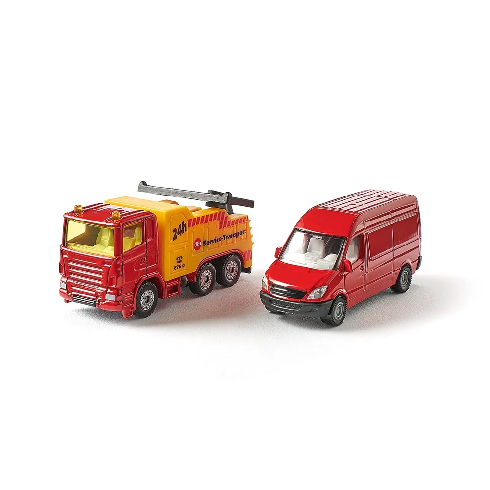 Грузовик-эвакуатор SIKU с микроавтобусом — это стильная модель для детей. Изготовлена из прочных материалов — металла и пластика, что обеспечивает долговечность и устойчивость к износу. В комплект входит микроавтобус, который можно установить на платформу грузовика. Эта модель идеально подходит для создания увлекательных сюжетных игр, например, перевозки пассажиров или доставки. Грузовик и микроавтобус из коллекции SIKU — отличное дополнение для юных любителей машин.