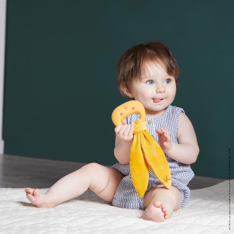 Силиконовый грызунок-кролик в теплом охристом цвете из коллекции Lapinoo — идеальный помощник для облегчения прорезывания зубов. Его мягкая округлая форма (высота 7 см, ширина 8 см) создана специально для маленьких ротиков. Продуман с заботой о благополучии малыша: передняя сторона гладкая с милой мордочкой кролика, а задняя покрыта мягкими шипами, которые помогают прорезыванию первых зубов и массируют воспаленные десны. Главная особенность — большие мягкие ушки длиной 16 см, которые легко захватывать маленькими ручками. Благодаря ушкам грызунок можно подвесить где угодно, чтобы он всегда сопровождал малыша. Ушки съемные — это облегчает мытье и уход за грызунком. Подходит с рождения.