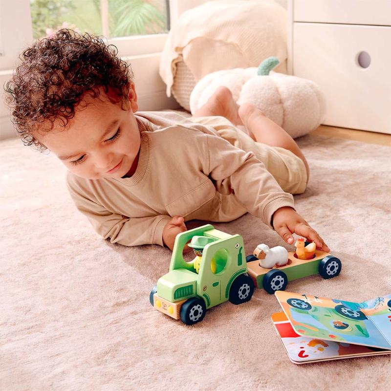 Отправляйся на весёлую ферму! Читай красочную историю и играй с трактором, овечкой и курочкой. Вместе с добрым фермером помогай животным, собирай урожай и узнавай о жизни на ферме. Книга учит доброте и любви к природе через захватывающие приключения. Трактор с настоящим звуком мотора делает историю ещё живее. Узнавай всё о сельском хозяйстве, играя.