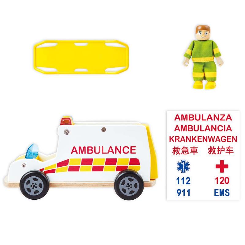 В комплекте: машина скорой помощи, фигурка врача, носилки. Для работы интерактивных элементов (света и звука) требуются 2 батарейки ААА (в комплект не входят).