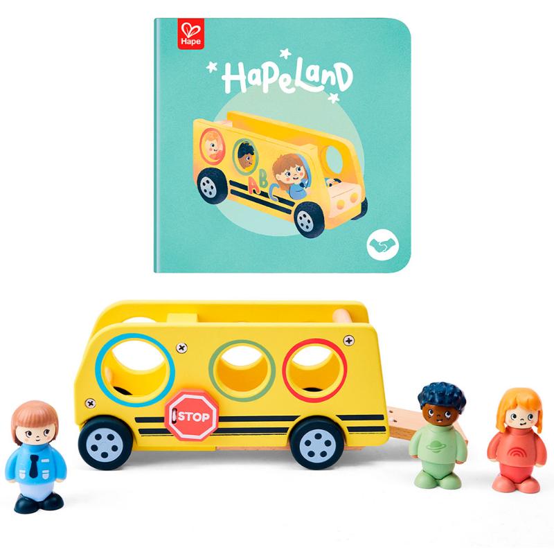 Поехали в школу! Жёлтый школьный автобус ждёт своих маленьких пассажиров. Рассаживай фигурки по местам, читай добрую историю из книжки и отправляйся в увлекательное путешествие. Книга учит доброте, уважению и дружбе через интересные приключения героев. Играй, читай и узнавай важные жизненные ценности вместе с весёлой компанией друзей из волшебного Hape Land.