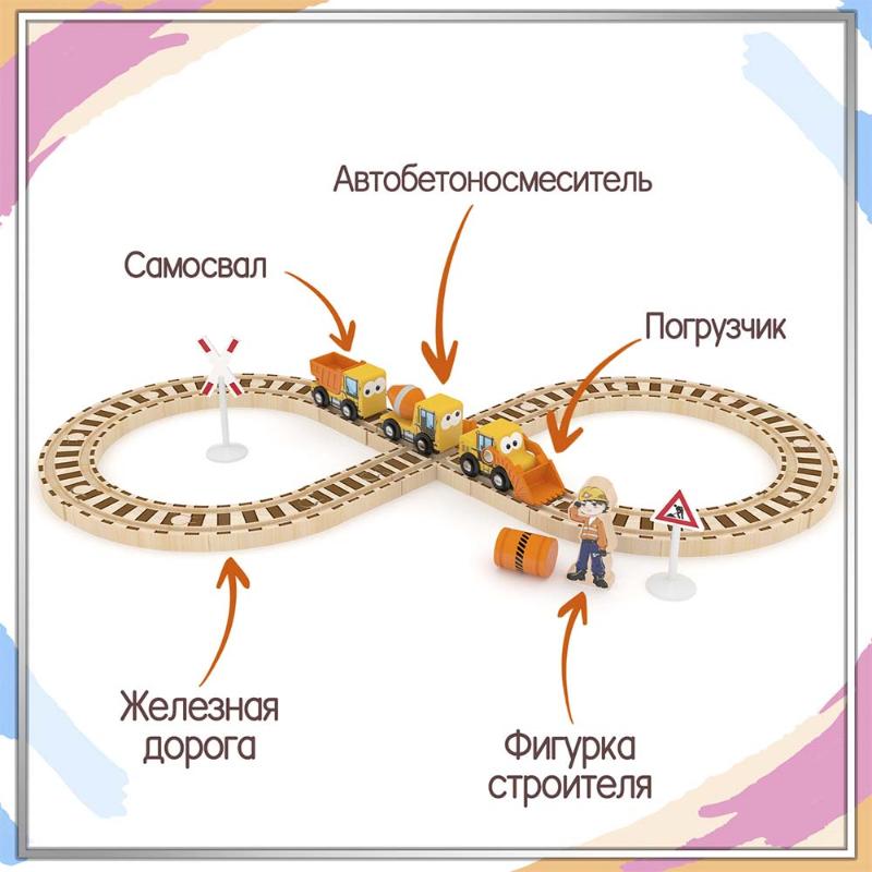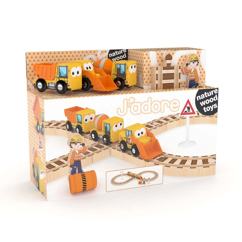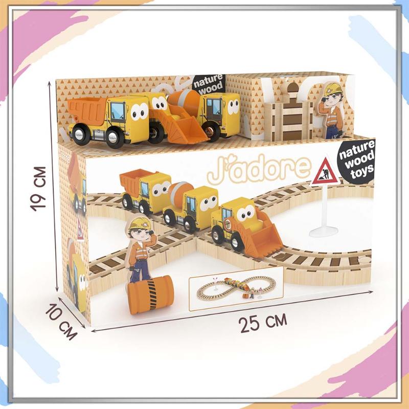 Строительная площадка с подъёмными кранами, грузовиками и железнодорожными путями — для тех, кто мечтает возводить города. Поезд доставляет материалы, спецтехника работает на объекте, а ребёнок руководит процессом. Деревянные детали прочные, краны подвижные, вагоны соединяются магнитами. Набор развивает инженерное мышление, координацию, понимание последовательности действий. Совместим с другими наборами Hape J'adore — можно построить целую транспортную инфраструктуру. Экологичные материалы, яркие цвета, бесконечный простор для игр.
