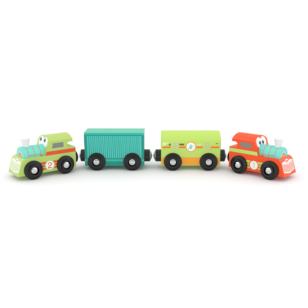 Яркий и дружелюбный поезд обязательно понравится маленьким путешественникам. Его вагончики соединяются между собой, а гладкие деревянные детали приятно держать в руках. Такой набор помогает развивать фантазию и мелкую моторику, а ещё легко сочетается с другими железнодорожными комплектами.