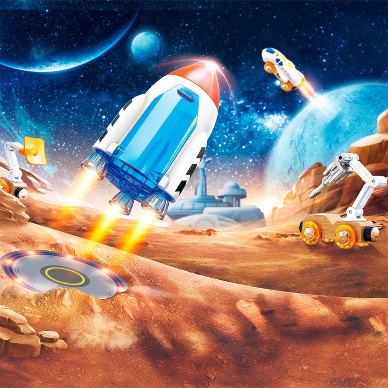 Отправляйся покорять галактики! В наборе целых 14 предметов для космических миссий: ракета, самолёт, вездеход, инструменты и отважный космонавт. Исследуй неизведанные планеты, бури скважины, перевози грузы и строй космические станции. Каждая деталь продумана до мелочей. Вселенная огромна, а приключения бесконечны — вперёд, к звёздам. Мечты о космосе станут реальностью.