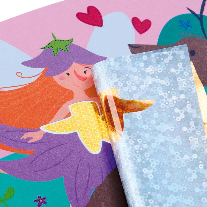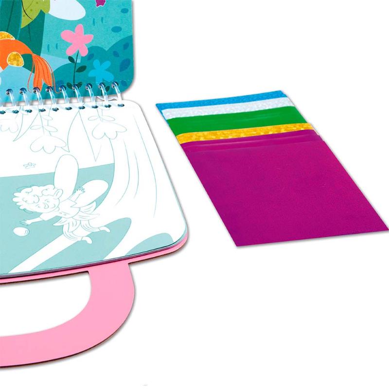 Волшебная страна оживает под твоими руками! Укрась сказочные картинки блестящей цветной фольгой — отклеивай и приклеивай яркие кусочки на рисунки. Принцессы, единороги и замки засияют переливами радуги! Техника «отклеивай-и-приклеивай» настолько лёгкая, что творить шедевры можно бесконечно. Создавай сверкающие фэнтезийные миры и дари настоящее волшебство.