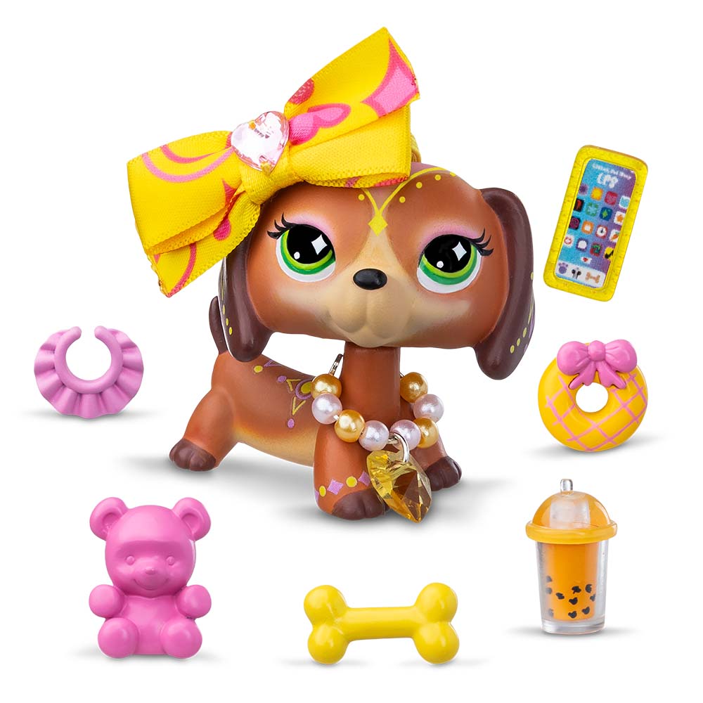 Эта забавная такса с аксессуарами готова к весёлым приключениям! Дети могут устраивать прогулки, игры и забавные шалости, придумывая свои истории. Игрушка вдохновляет на творчество, развивает фантазию и помогает создавать мини-сказки о дружбе и приключениях любимых питомцев, добавляя в коллекцию новых ярких героев.
