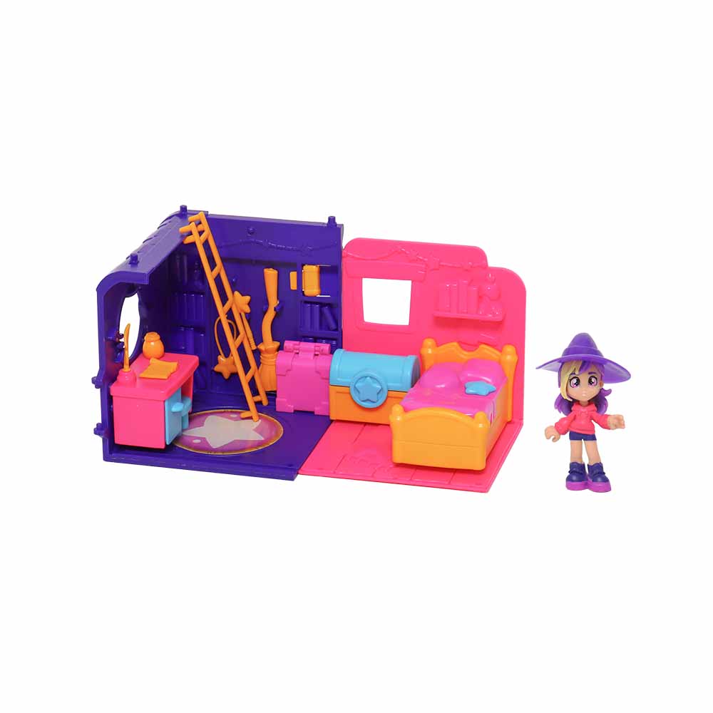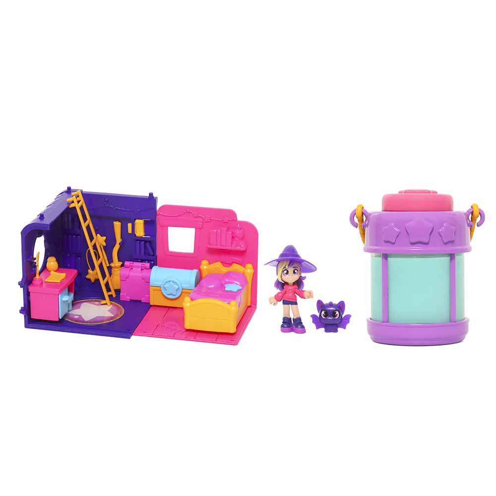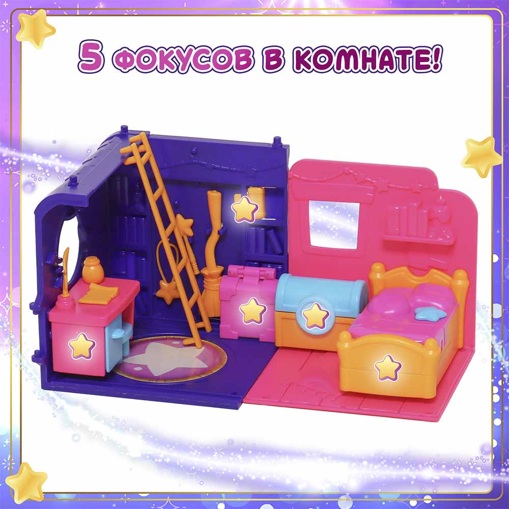 В комплект входит интерактивная спальня и фонарь-телепорт, позволяющий устроить зрелищное «исчезновение» или «появление» героя. Комната предлагает несколько секретов, которые ребёнок открывает в процессе игры, наблюдая, как детали реагируют на его действия. Телепорт делает сюжет более динамичным: мини-маг может перемещаться между локациями, попадать в смешные ситуации и открывать новые загадки.