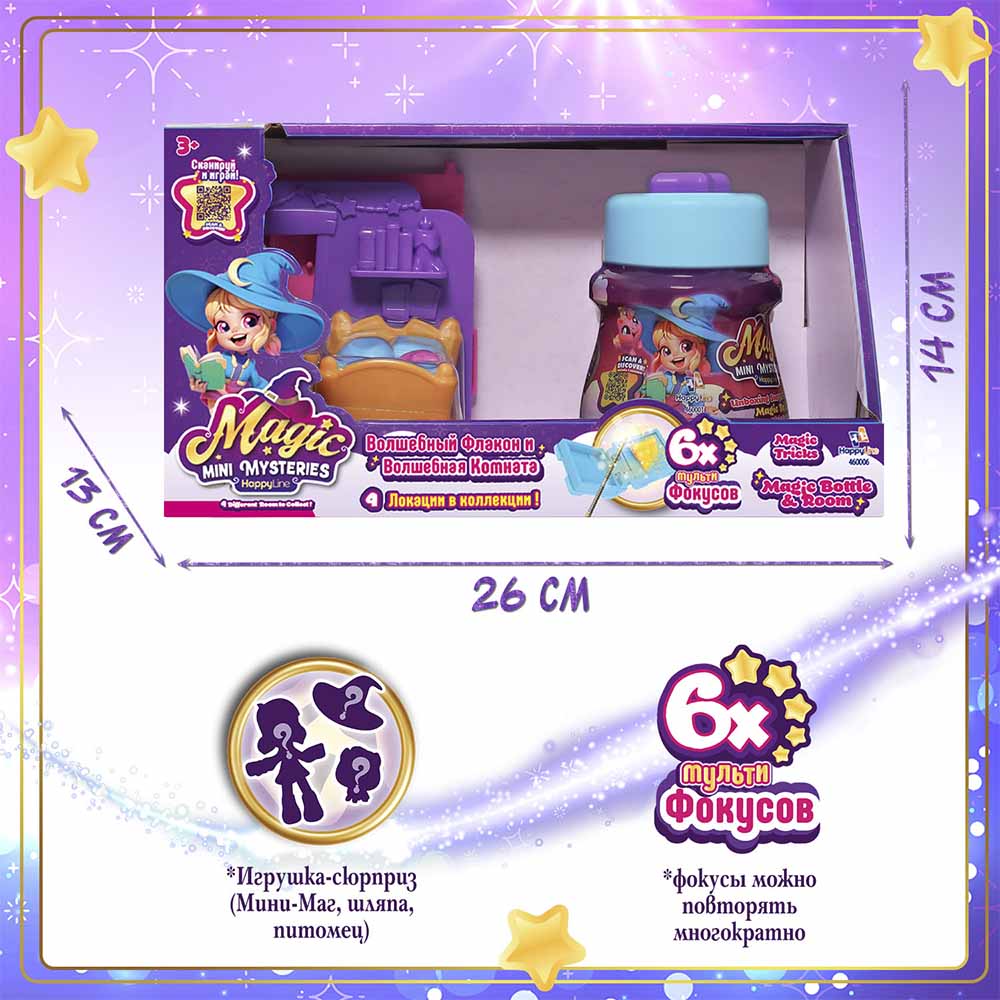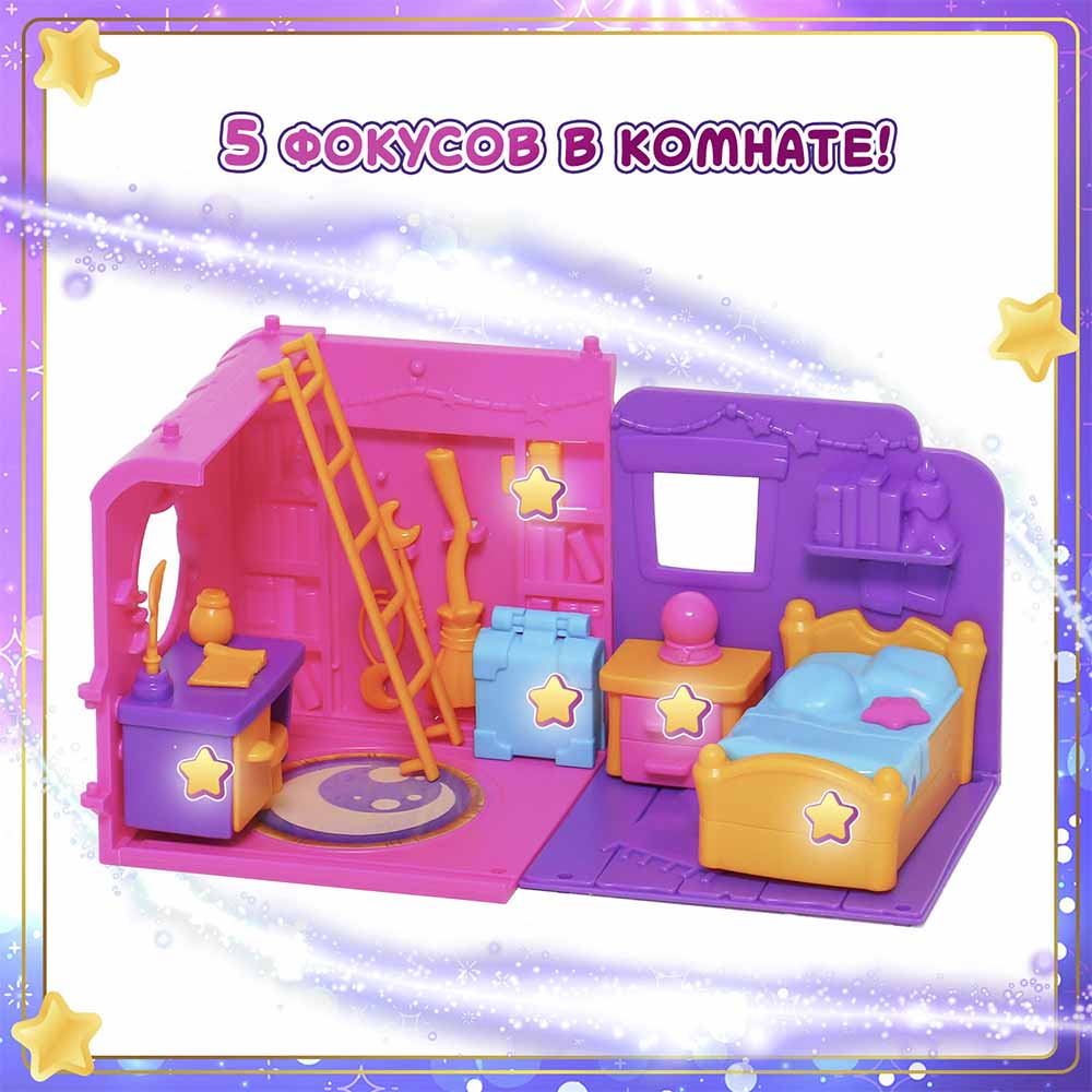 Лунная спальня создаёт атмосферу спокойного, но насыщенного тайнами пространства. Ребёнок может исследовать секреты комнаты, открывая их в произвольном порядке, и строить игру вокруг маленьких открытий. Флакон усиливает впечатление: фокус с появлением питомца делает сюжет более живым. Мини-маг может отдыхать, искать спрятанные элементы или устраивать вечерние приключения, превращая комнату в место постоянных открытий.