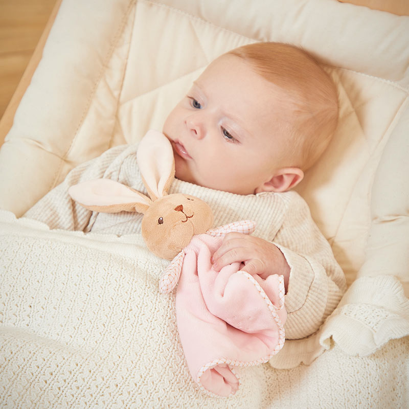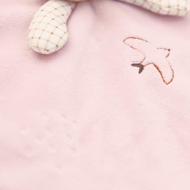 Изящный розовый кролик-комфортер с кремовой головкой и пушистым телом из коллекции Intemporel. Очарователен в своем вечном стиле с новым принтом на узелках. Его сопровождает птичка-спутник, отдыхающая на плече, для нежных приключений с малышом. Комфортер имеет четыре узелка, которые идеальны для игры, жевания или крепления пустышки, чтобы она всегда была рядом. Длинные ушки и лапки легко захватывать маленькими ручками. Украшен вышивкой ласточки — символом обновления и свежести, принтом клетки и атласными деталями. Создан из благородных материалов в традиционных цветах. Становится незабываемым и уникальным другом на все первые ночи малыша. Подходит с рождения.