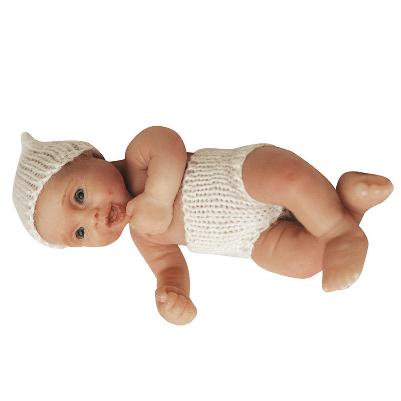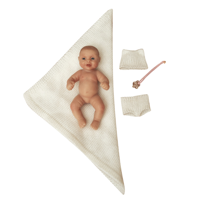 Совсем крохотный — 12 сантиметров, умещается в кулачке. Но детали такие же тщательные, как у больших кукол: видны ноготки, складочки, маленькие пальчики. Белый пупс выглядит особенно нежно. Его можно купать и обрабатывать присыпкой. Такой малыш станет первой настоящей куклой, о которой ребенок будет по-настоящему заботиться.