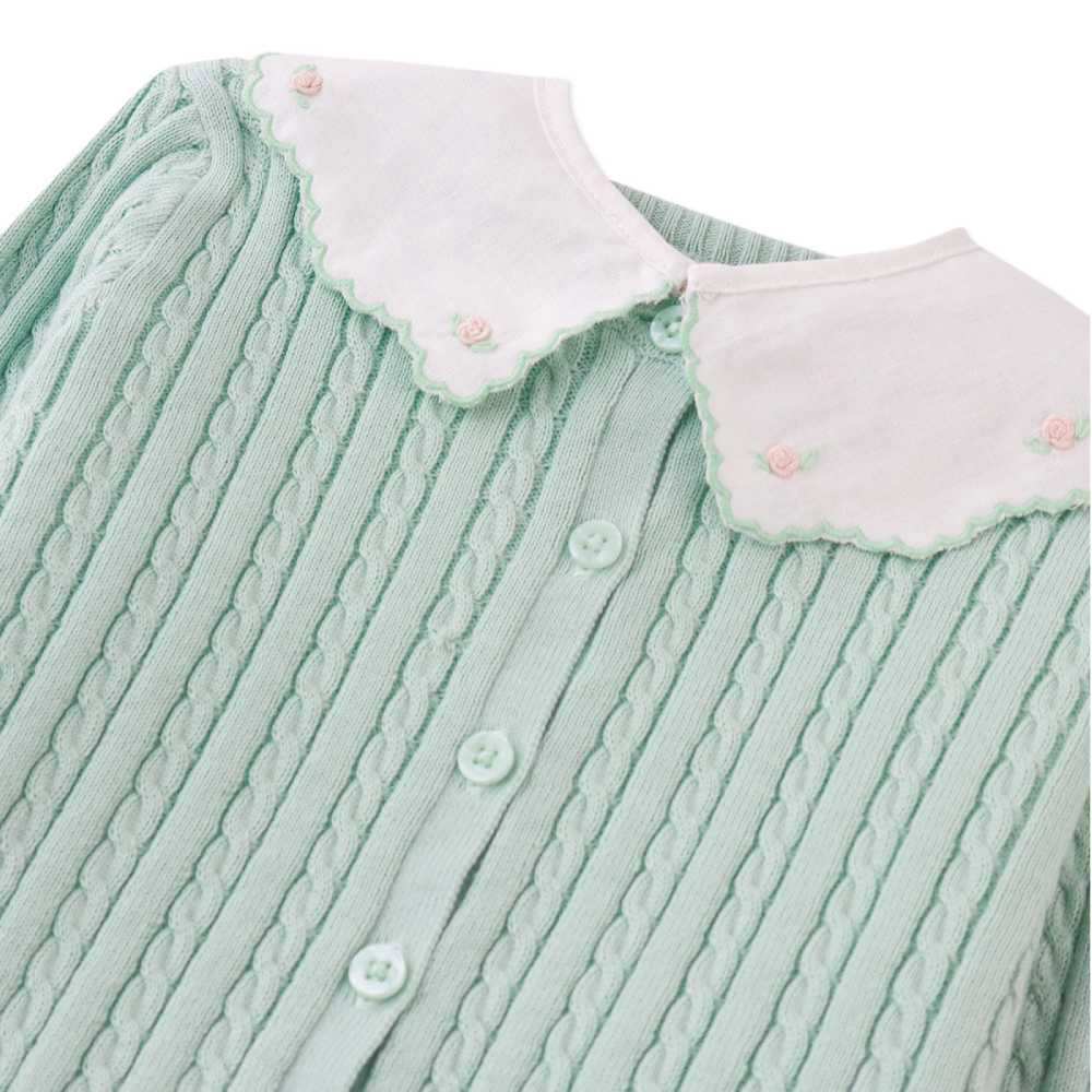 Воздушный вязаный кардиган в свежем мятном оттенке Green — лёгкость и стиль для юных модниц! Нежная пряжа создаёт невероятную мягкость, а ажурная вязка выглядит изящно и романтично. Frida легко надевается и застёгивается, что удобно для самостоятельных девочек. Кардиган универсален — носите с платьями, джинсами или юбками. Мятный цвет освежает образ и прекрасно сочетается с любыми оттенками. Это та вещь, которая дополнит и повседневный, и праздничный наряд. Практичный уход и долговечность — приятный бонус!