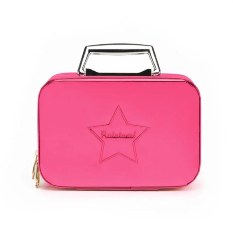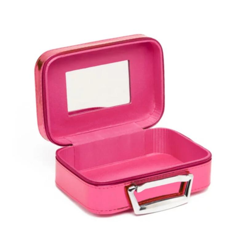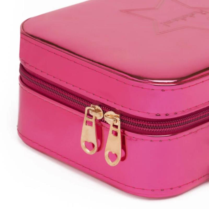 Блестящий розовый кейс для хранения детской косметики и украшений. Внутри встроенное зеркало и место для разных мелочей. Можно складывать детскую косметику, заколки, резинки, браслеты. Компактный, удобно брать с собой в гости или поездки. Закрывается на замок. Ручка сверху делает переноску удобной. Яркий блестящий дизайн порадует любую девочку. Помогает организовать хранение и приучает к аккуратности. Отличный подарок для юной модницы.