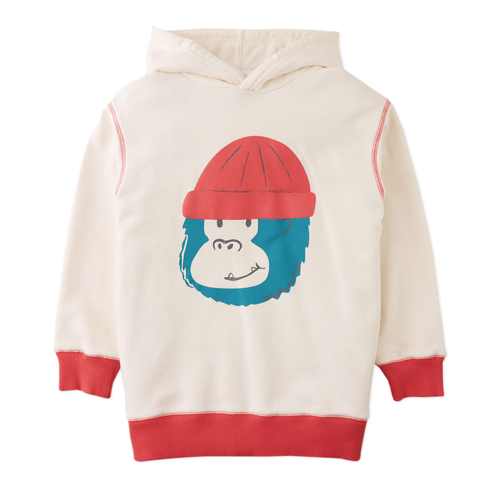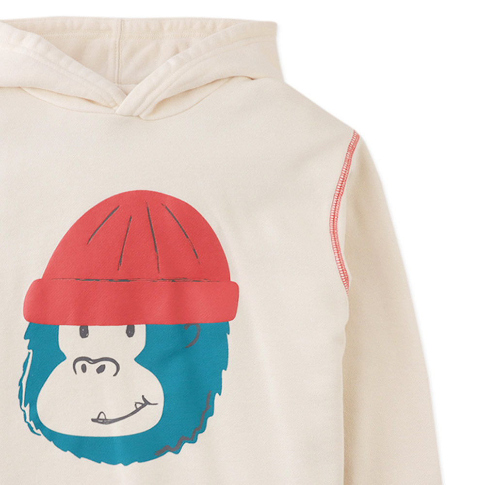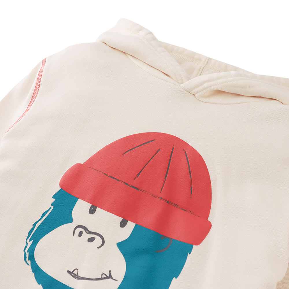 Уютное худи в нежном молочном цвете с весёлым принтом гориллы — комфорт и улыбки гарантированы! Мягкая ткань приятна коже, а свободный крой позволяет двигаться без ограничений. Gregory Gorilla превращает обычное худи в маленькую историю о забавных приключениях. Капюшон защищает от ветра, а удобный карман-кенгуру пригодится для маленьких сокровищ. Идеально для прогулок, игр и активного отдыха. Легко сочетается с джинсами, спортивными брюками и шортами. Ваш малыш полюбит это худи за мягкость и крутой дизайн!
