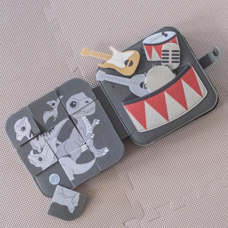 Фетровая книга с динозаврами и интерактивными страницами. Каждый разворот предлагает новое задание: считать, сортировать, находить пары или изучать цвета. Мягкие детали приятны на ощупь и стимулируют тактильное восприятие. Отличный вариант для тихого времяпровождения дома или в дороге. Развивает моторику и мышление. От 3 лет.