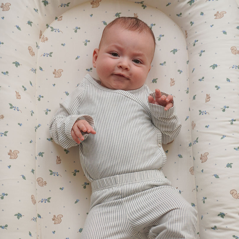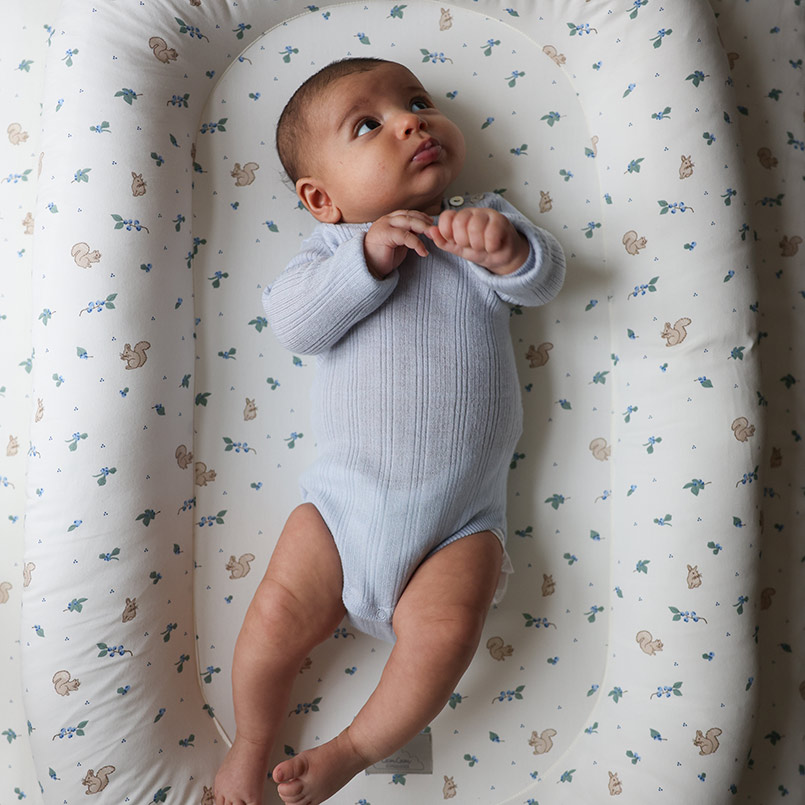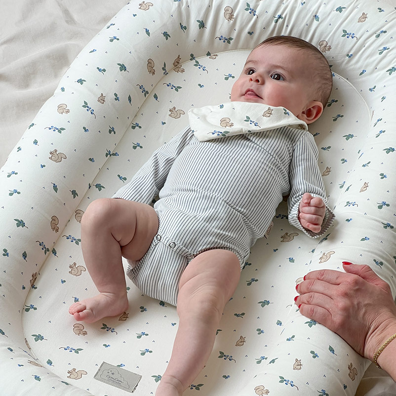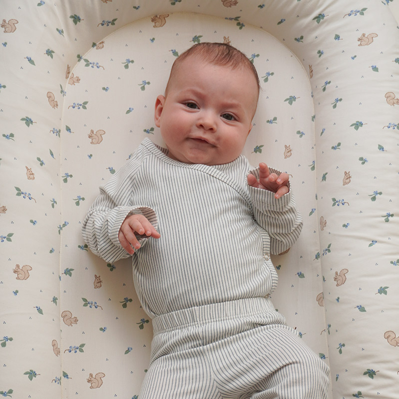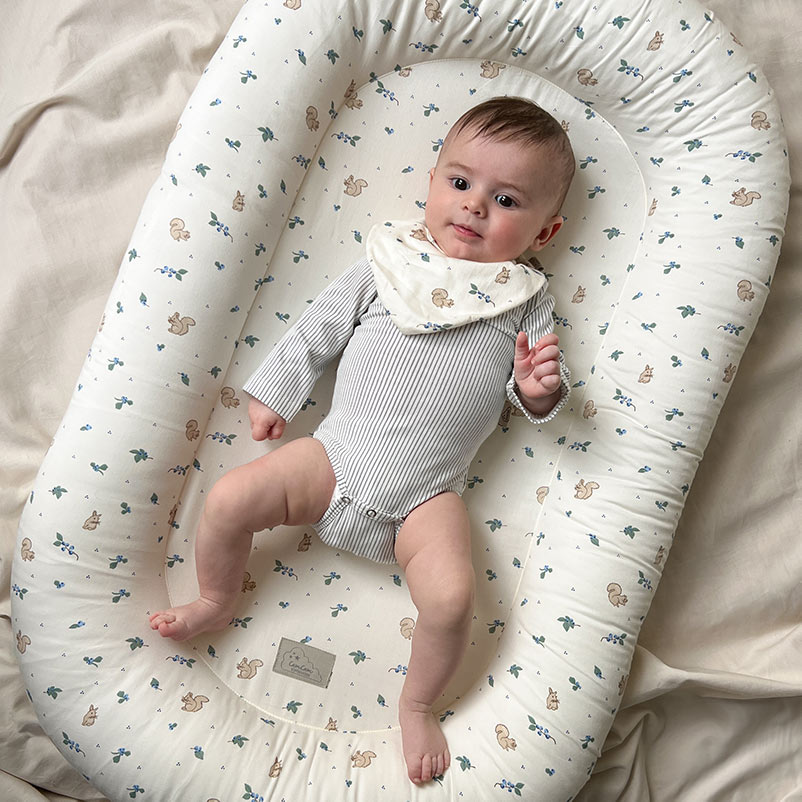 Когда малыш только появился на свет, большое открытое пространство кроватки может пугать — он привык к совсем другому. Этот кокон из органического хлопка обнимает со всех сторон и дает то самое ощущение защищенности. Устойчивое дно не прогибается при переноске. Принт «Черника» добавляет изделию особого очарования — нежный, природный и по-настоящему уютный акцент в детской. Рекомендуется использовать гнездо только на ровной поверхности. Идеальное решение для первых месяцев жизни, когда так важно окружить малыша заботой, мягкостью и ощущением дома.