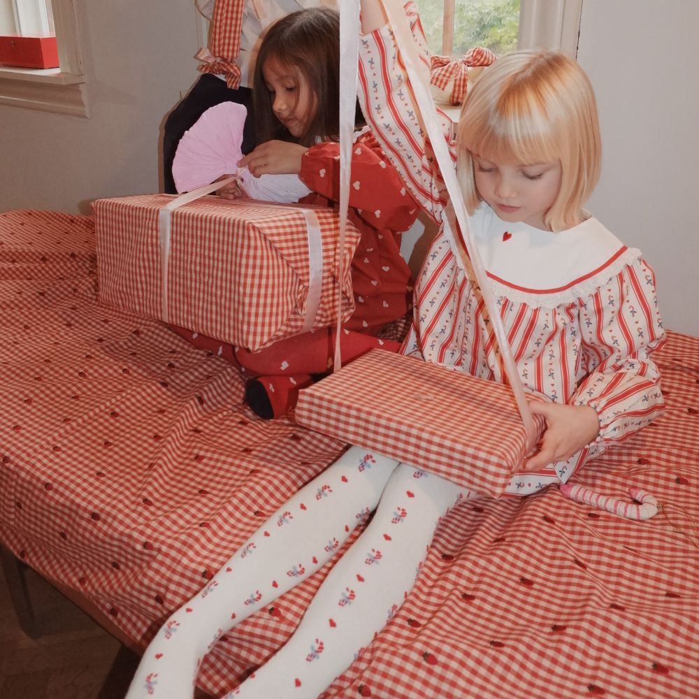 Колготки Flöss "Vera Noelle", алые сердца на снегу