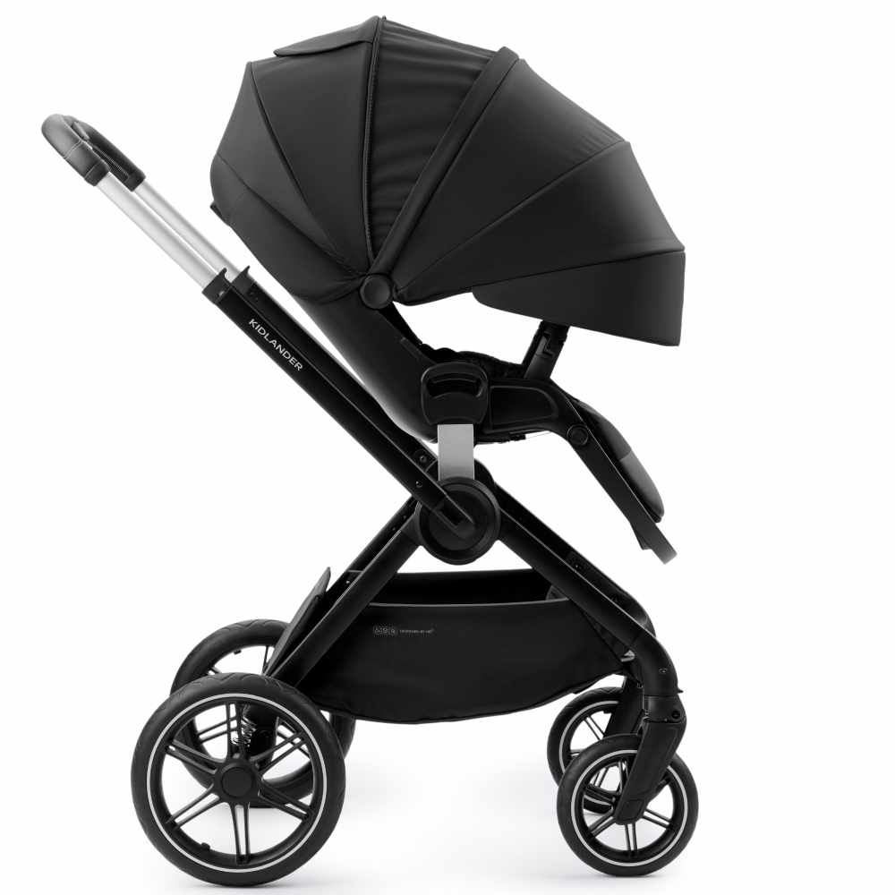 Kidlander в чёрном цвете — универсальный спутник прогулок. Люльку легко превращают в прогулочный блок, колёса мягко идут по разным дорожкам, а ткань устойчива и аккуратна. Мамам важно простое управление и лаконика, — и именно это даёт эта коляска.