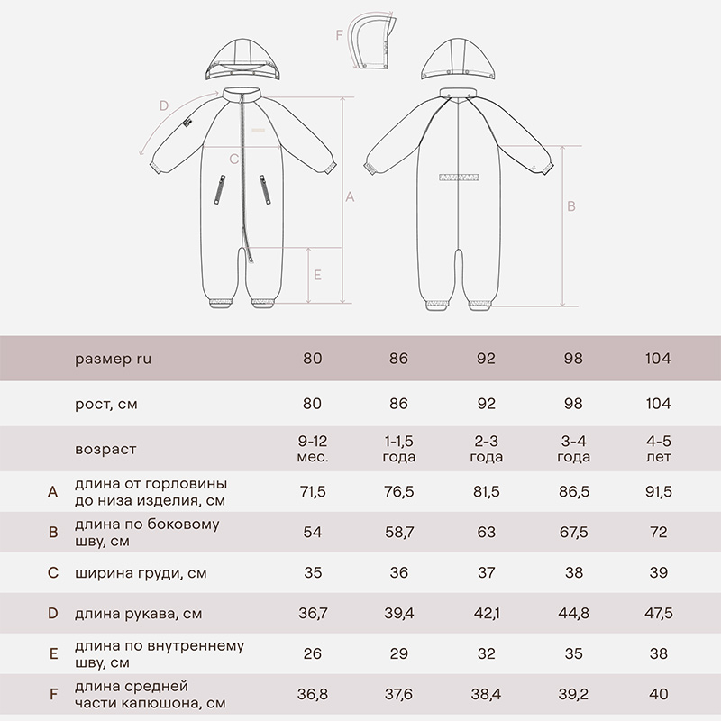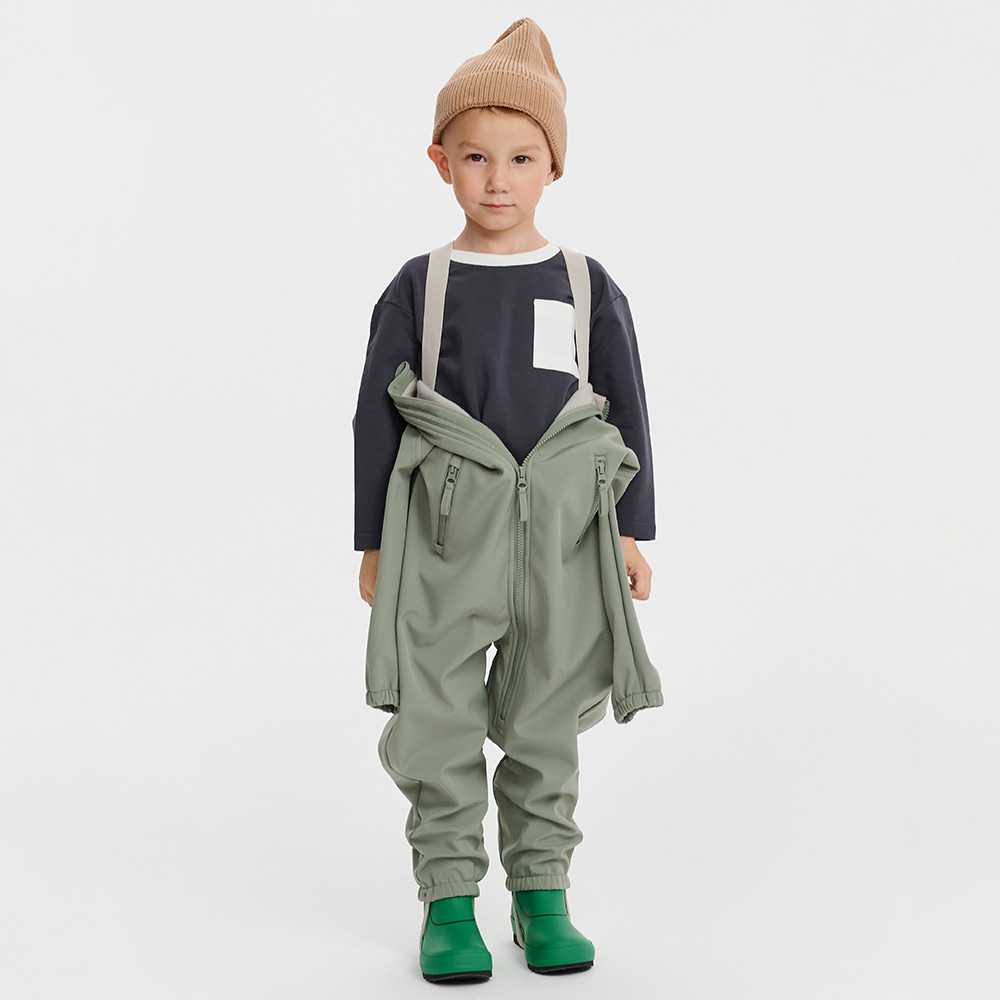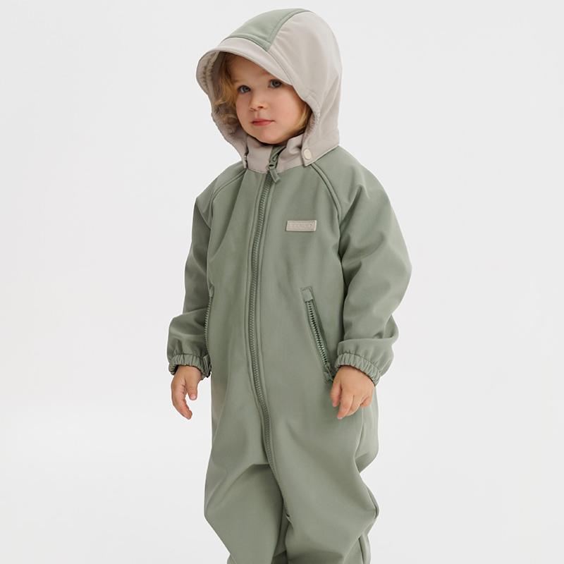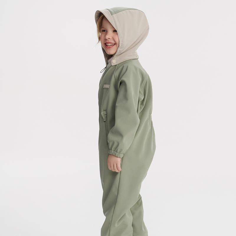 Лёгкий и подвижный, этот комбинезон словно создан для переменчивой погоды. Он дышит, не даёт перегреться, но защищает от ветра и дождя. Практичный серо-зелёный оттенок хорошо смотрится в любом образе, а удобный крой даёт свободу движения. Идеален для активных игр, первых походов и весёлых прогулок с друзьями.