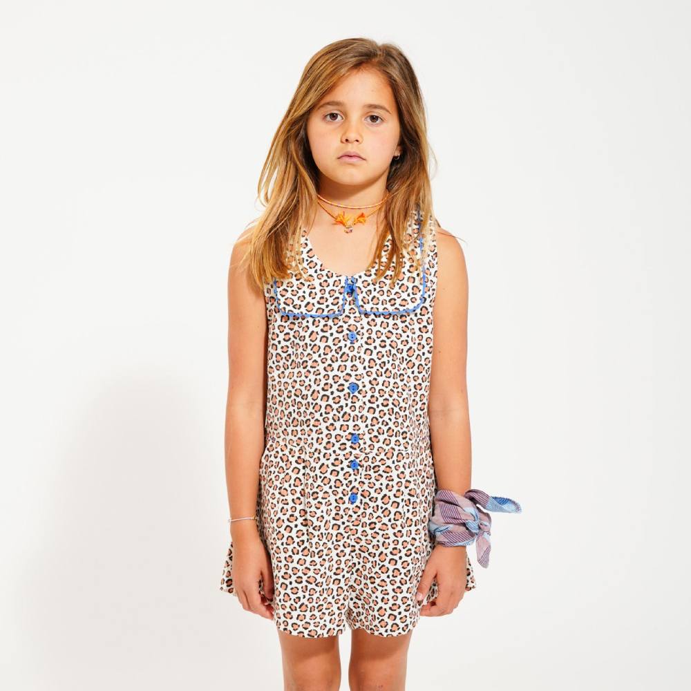 Комбинезон с отложным воротником из коллекции "Animal" — это стиль и комфорт в одном флаконе. Легкий и практичный, он выполнен из мягкой ткани с утонченным леопардовым принтом, который придает образу элегантности. Отложной воротник добавляет образу завершенности, а свободный крой позволяет ребенку двигаться с комфортом. Такой комбинезон идеально подходит для летних прогулок и активных игр, оставаясь при этом стильным и практичным.