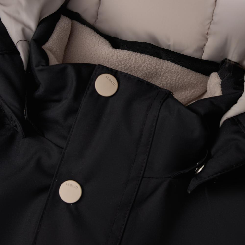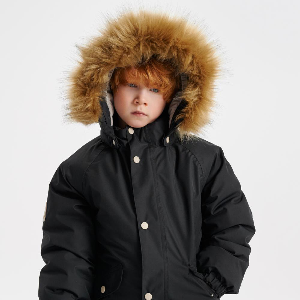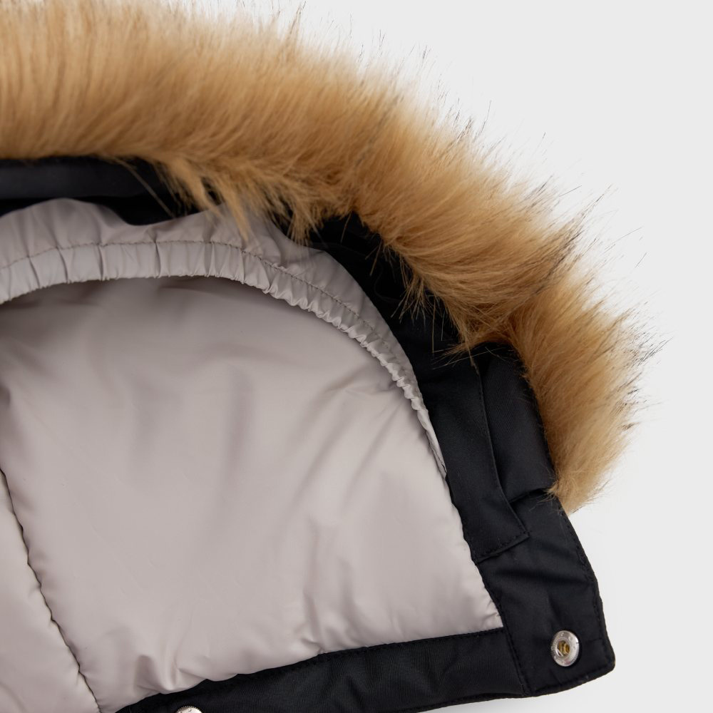 Глубокий чёрный оттенок придаёт этому комбинезону особый характер. Он выглядит стильно и немного дерзко, но внутри — полный уют и тепло. Ребёнку будет комфортно играть, кататься на санках или просто гулять по морозному городу. Это универсальный вариант для зимних приключений, где важны и практичность, и красота.