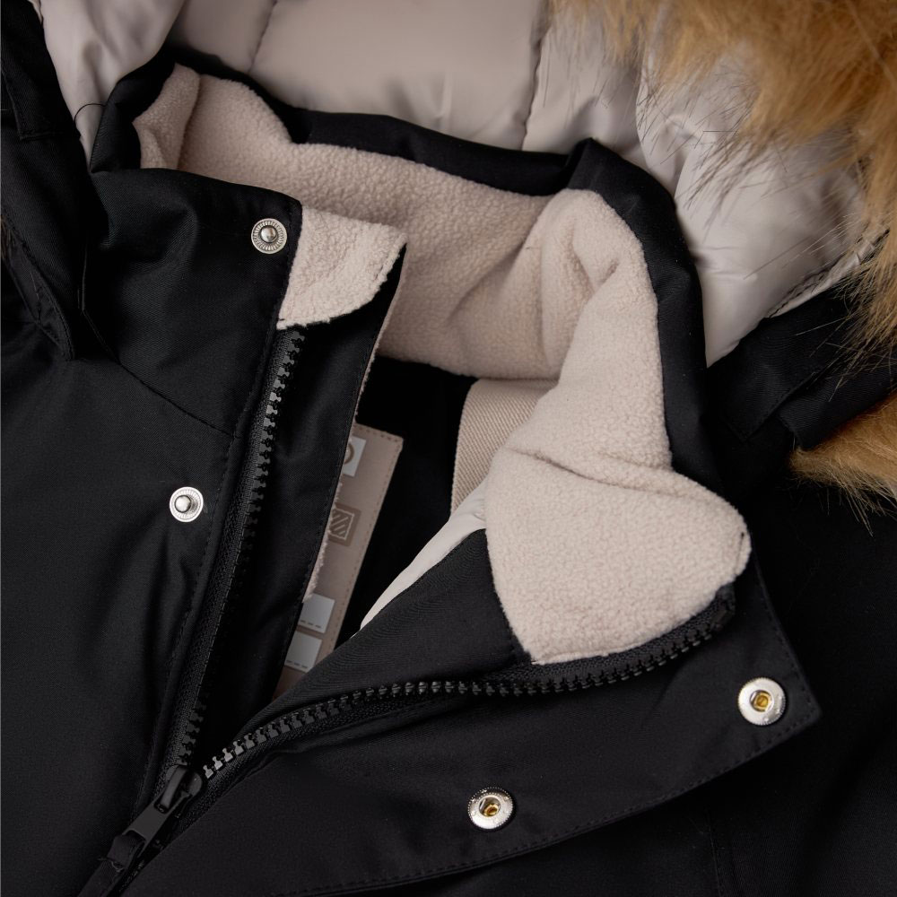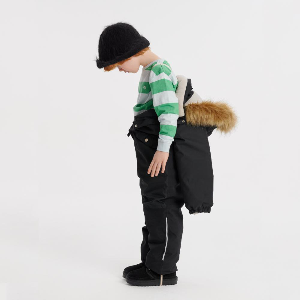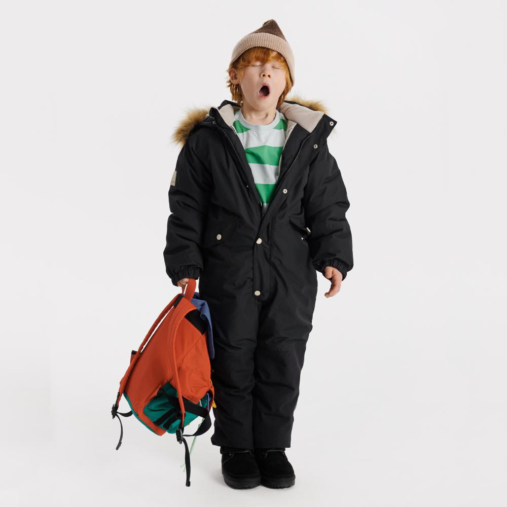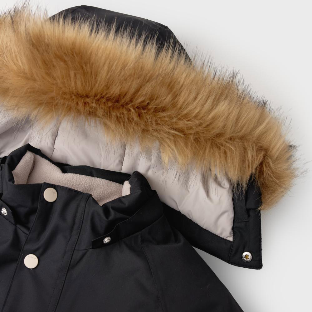 Глубокий чёрный оттенок придаёт этому комбинезону особый характер. Он выглядит стильно и немного дерзко, но внутри — полный уют и тепло. Ребёнку будет комфортно играть, кататься на санках или просто гулять по морозному городу. Это универсальный вариант для зимних приключений, где важны и практичность, и красота.