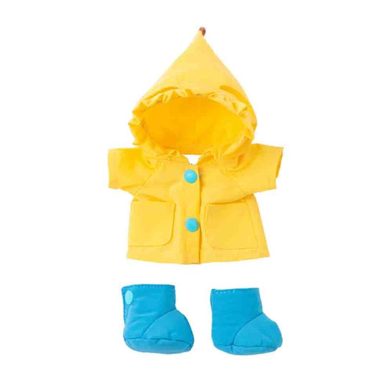 Яркий жёлтый дождевик с маленькими туфельками сделает игрушку настоящим героем дождливых прогулок. Он защищает от воображаемых капелек и придаёт образу задор. Такой наряд вдохновляет на весёлые истории о путешествиях по лужам и приключениях в сказочном лесу после дождя.