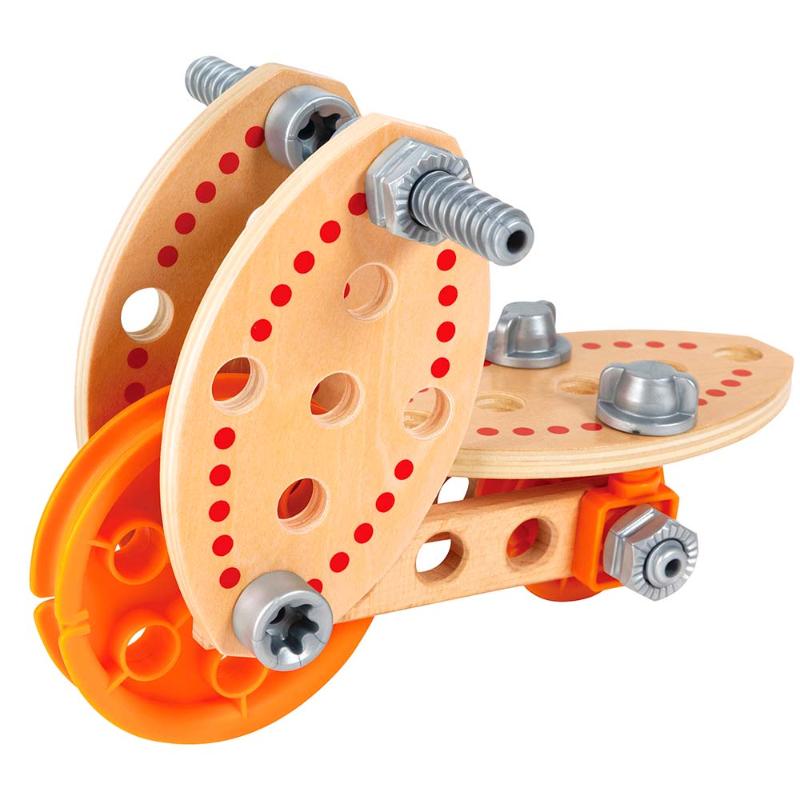 В комплекте: 66 строительных деталей и 5 карточек с инструкциями.