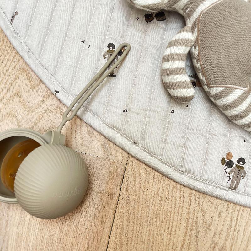 Нейтральный серый тон подходит под любой стиль и цвет коляски. Мягкий силикон защищает пустышки от пыли и грязи во время прогулок. Компактный размер не занимает много места в сумке. Ремешок надёжно фиксирует контейнер, чтобы он всегда был под рукой. Просто промывается водой, не впитывает запахи, долго сохраняет форму.