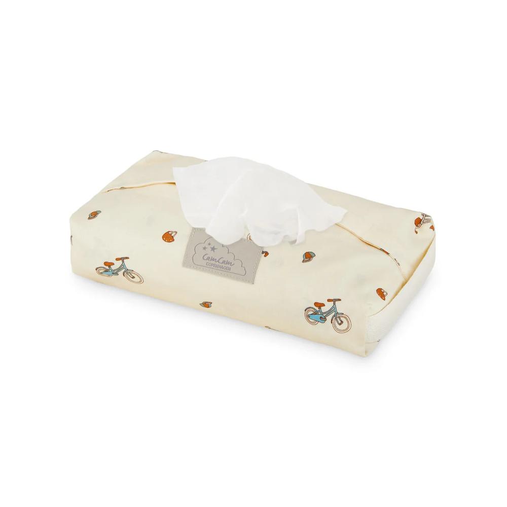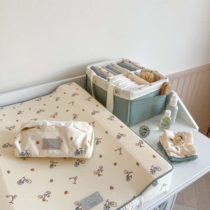 Практичный и стильный контейнер поможет хранить влажные салфетки в порядке и сохранить их свежими. Компактная форма позволяет легко поместить его в сумку или оставить дома на пеленальном столике. Кремовая расцветка с велосипедами выглядит нежно и современно. Крышка плотно закрывается и защищает содержимое от высыхания. Такой аксессуар особенно удобен в повседневной жизни с малышом — всегда под рукой и легко сочетается с остальными предметами ухода.