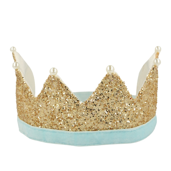 Выглядеть настоящим королем или королевой праздника вашему ребёнку поможет эта роскошная корона Meri Meri. Отделанная золотой тканью и крупными жемчужинами, она заставит вашего малыша блистать на вечеринке и позволит выделиться на фоне других гостей. Благодаря мягкой эластичной резинке аксессуар отлично держится на голове, не давит на нежную кожу и не спадает во время активных игр. Застегивается корона на качественную липучку, а значит, ее размер можно легко регулировать.