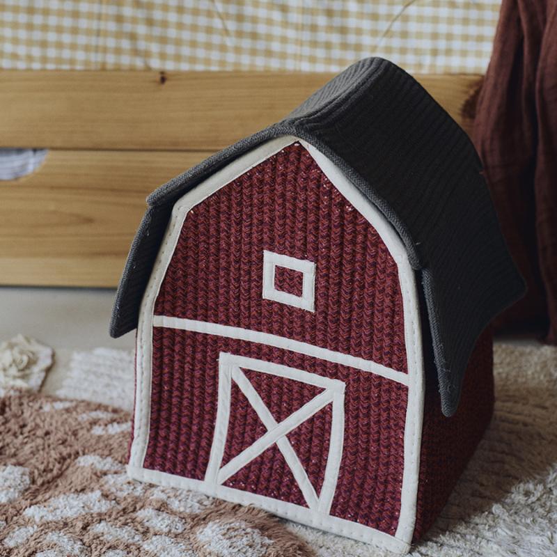 Добро пожаловать на ферму! Эта корзина в форме амбара с открывающейся крышей покорит сердце маленького фермера. Красные стены с деталями создают узнаваемый силуэт деревенского домика. Вместительное пространство идеально для хранения игрушек, пледов или книг. Сделана из хлопковых шнуров с наполнителем из переработанных пластиковых бутылок — забота о природе с младых ногтей. Развивает воображение и помогает поддерживать порядок, просто играя!