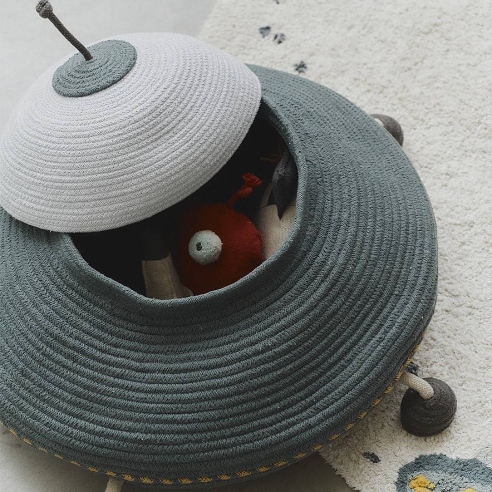 Корзина с изображением НЛО идеально подойдет для хранения игрушек или других предметов в детской комнате. Ее дизайн с необычным космическим мотивом привнесет в интерьер элемент загадочности и фантазии. Размер корзины достаточно вместительный, чтобы помочь организовать пространство. Она выполнена из безопасных и долговечных материалов, которые легко чистятся. Отличное решение для создания порядка в комнате и добавления уникального акцента в интерьер.