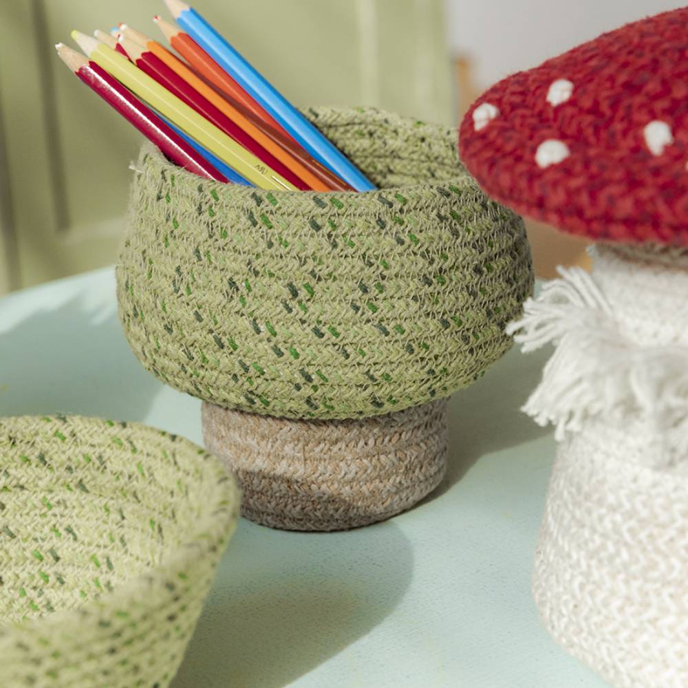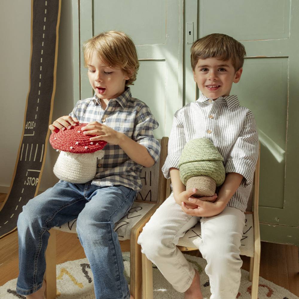 Компактная корзина в форме дерева подходит для хранения мелочей, книг и любимых игрушек. Лёгкая и удобная, она легко помещается на полке или у кровати. Плетёная структура сохраняет форму, а ручки помогают быстро навести порядок. Хороший вариант для поддержания аккуратного пространства в детской без лишней нагрузки на интерьер.