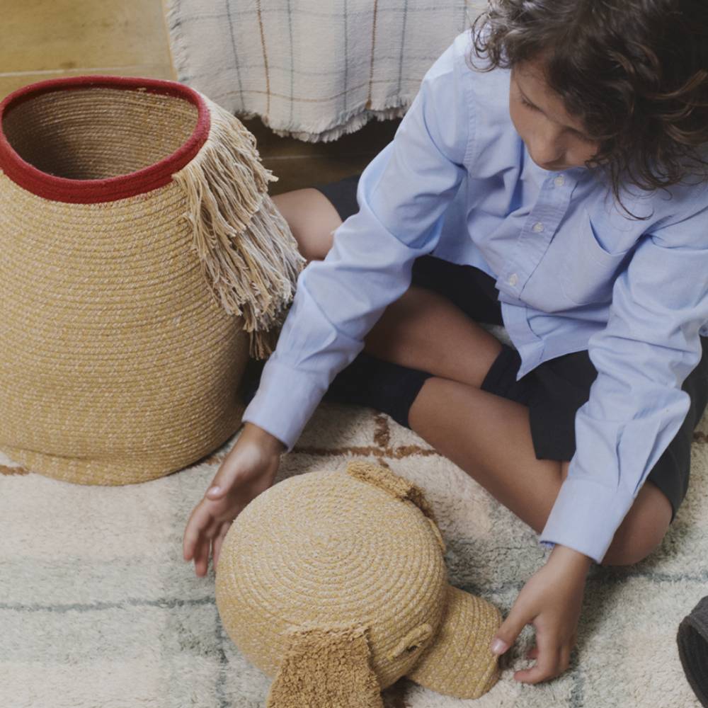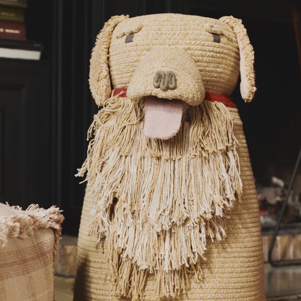 Корзина в форме собаки создаёт уютную атмосферу и помогает держать детские вещи в порядке. Подходит для хранения игрушек, пледов или книг. Устойчивая форма и мягкое плетение делают её удобной для ежедневного использования. Легко переносится и органично смотрится в игровой зоне или рядом с кроватью.