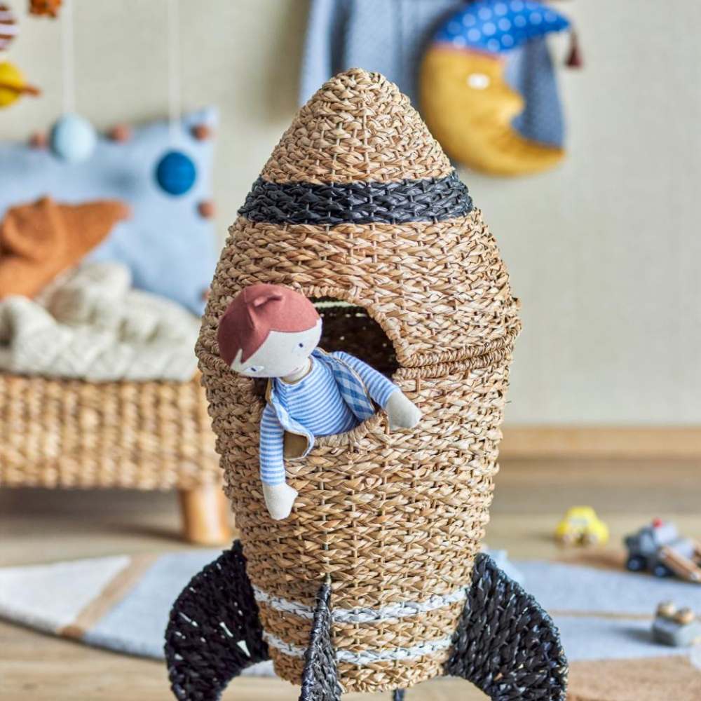 Корзина Bloomingville "Cosmina" — это уникальный элемент для хранения игрушек и других мелочей в детской комнате. Ее крышка в виде ракеты придает корзине веселый и креативный вид. Плетеная структура из прочных материалов обеспечивает надежность и долговечность, а размеры корзины позволяют удобно хранить вещи. "Cosmina" станет не только функциональным, но и декоративным элементом интерьера, создавая атмосферу игры и фантазии.