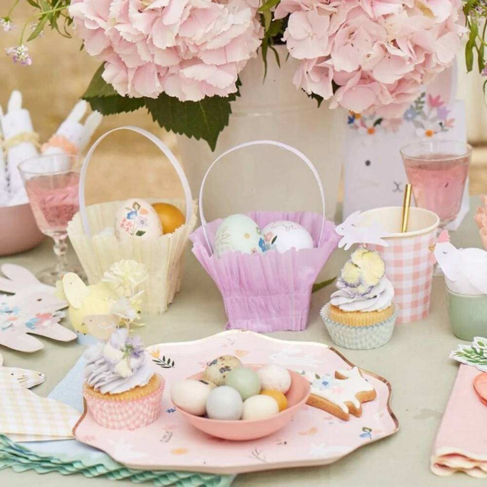 Одиннадцать хлопковых флажков в голубом, розовом, мятном, желтом и персиковом — каждый с надписью белыми буквами. Нанизаны на тесьму рикрак, которая сама выглядит как часть декора. Убирается в мешочек из органзы и легко ждет следующей весны — без заломов, без хлопот.