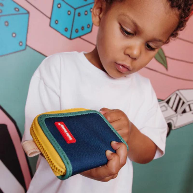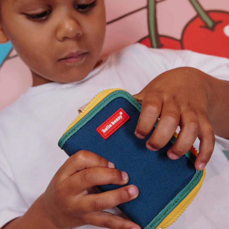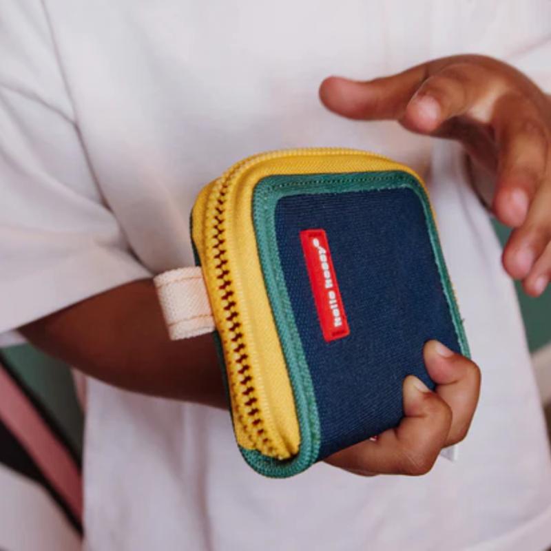 Глубокий темно-синий цвет этого кошелька напоминает звездное небо перед сном. Компактный и практичный, он легко поместится в карман рюкзака или куртки. Внутри достаточно места для карманных денег, проездного и других маленьких сокровищ. Прочная молния надежно хранит секреты, а яркая фирменная бирка Hello Hossy добавляет изюминку. Идеальный аксессуар для тех, кто учится распоряжаться своими первыми финансами!