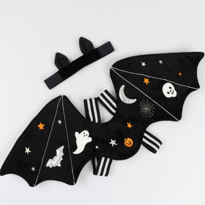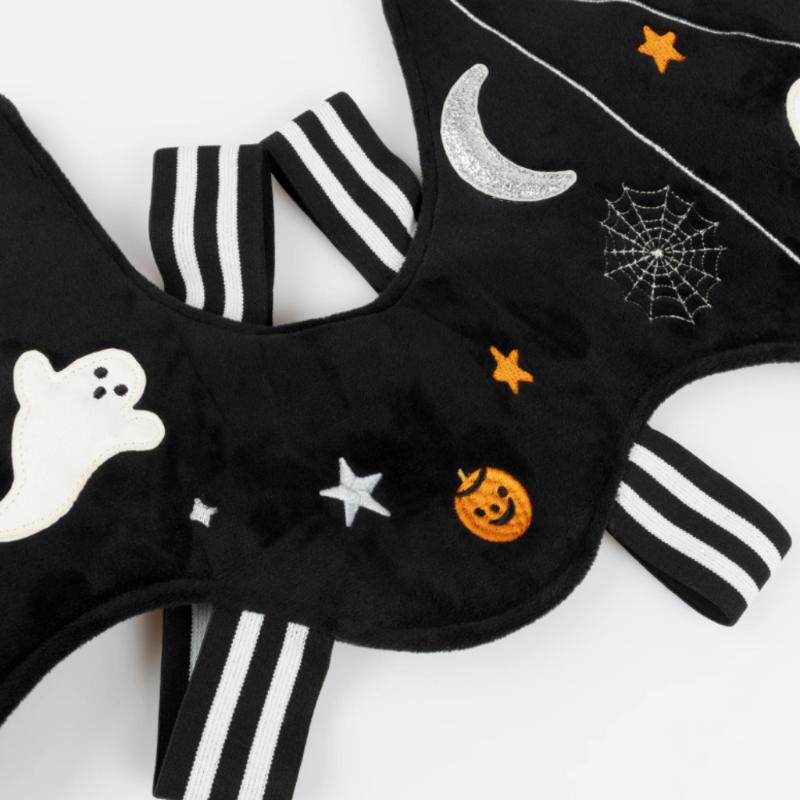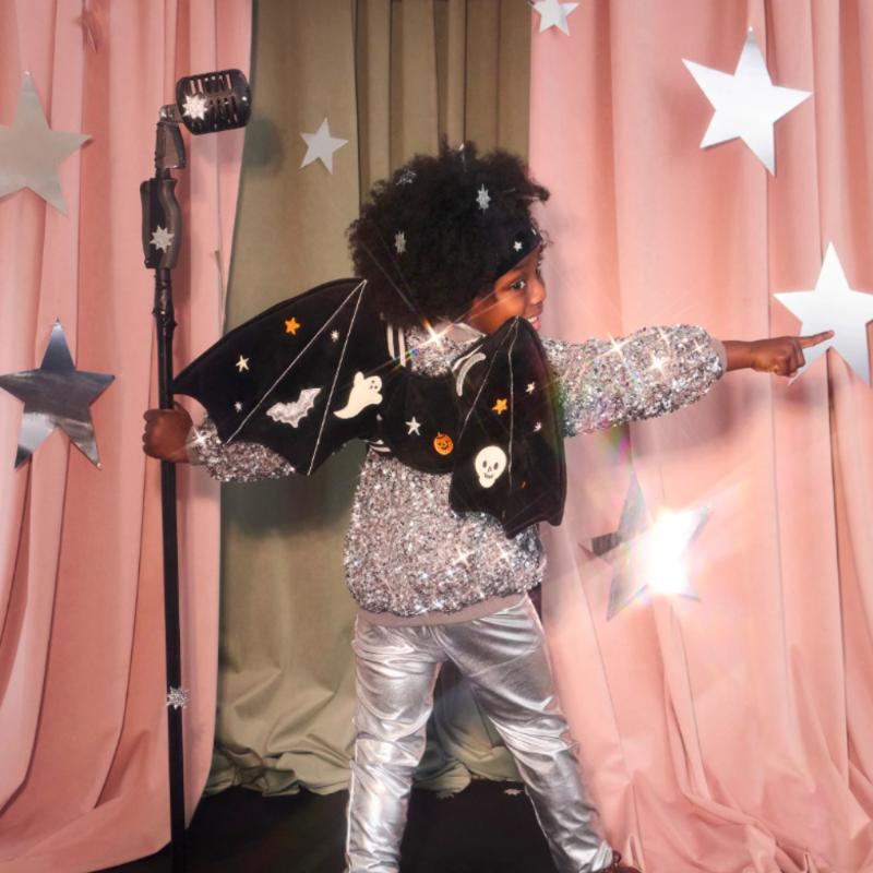 В ночи расправляются крылья! Костюм летучей мыши с чёрными крыльями и характерной маской превращает ребёнка в таинственное ночное существо. Лёгкая накидка удобно крепится и развевается при движении. Идеален для Хэллоуина, тематических вечеринок или просто для весёлых игр. Качественные материалы и продуманный дизайн от Meri Meri гарантируют комфорт. Пусть маленькая летучая мышь отправляется в ночные приключения!