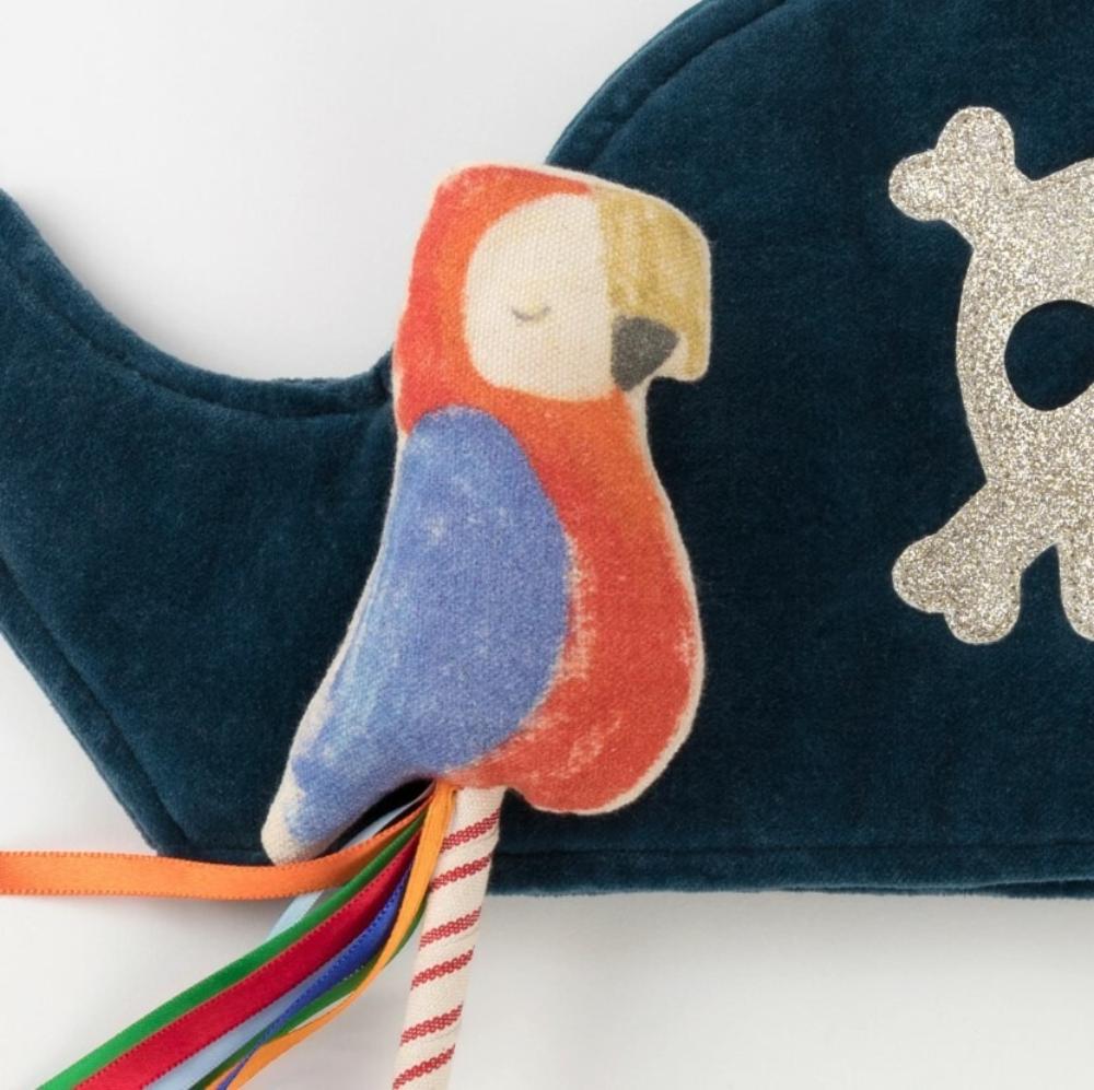 Этот костюм от Meri Meri – идеальное решение для пиратской вечеринки или веселой творческой игры. Он состоит из роскошной бархатной шляпы с узнаваемой эмблемой спереди, золотистой повязки на глаз на эластичной резинке, мягкого серебристого крючка из ткани и деревянной палочки с лентами с неизменным атрибутом отважных корсаров – забавным разноцветным попугаем. Такой костюм помогает создать невероятно реалистичный образ, который обязательно произведет впечатление на всех гостей детского мероприятия.