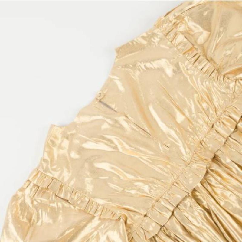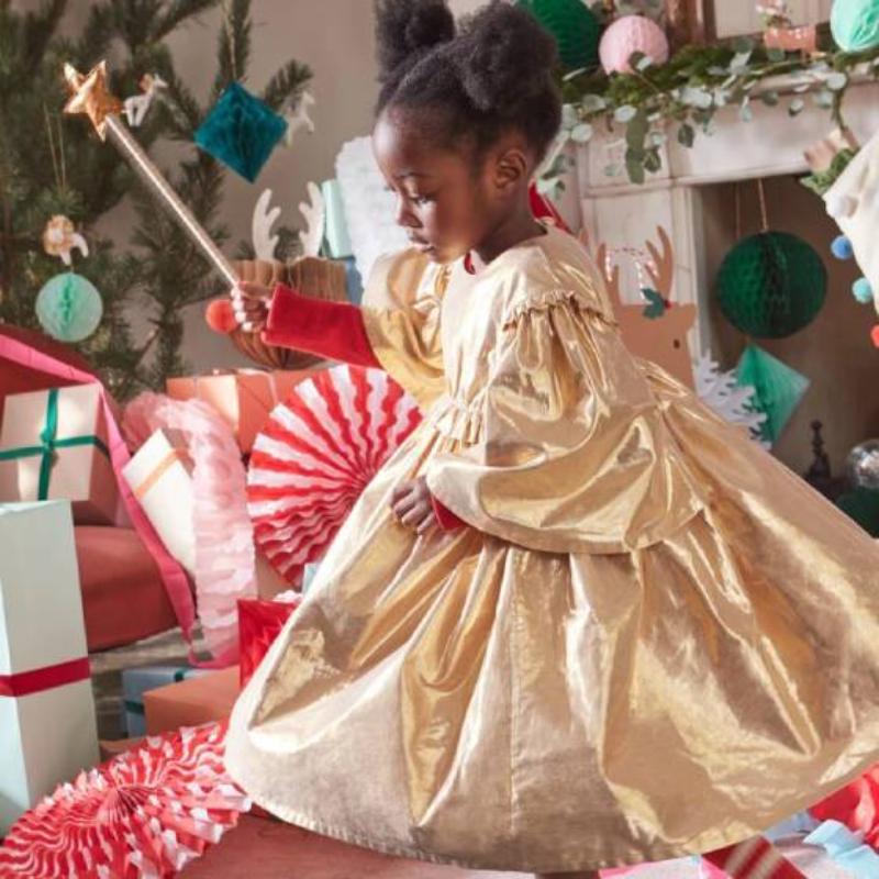 Этот великолепный комплект непременно привлечёт внимание всех окружающих и позволит вашей малышке почувствовать себя настоящей героиней волшебной сказки. Пышное золотое платье с завышенной талией, короткими рукавами-фонариками и изящными рюшами, подчеркнёт красоту и грацию девочки. Волшебная палочка, украшенная мягкой блестящей звездой и лентой цвета слоновой кости дополнит образ феи или волшебницы. Такой карнавальный костюм станет идеальным выбором для любого детского праздника или маскарада.
