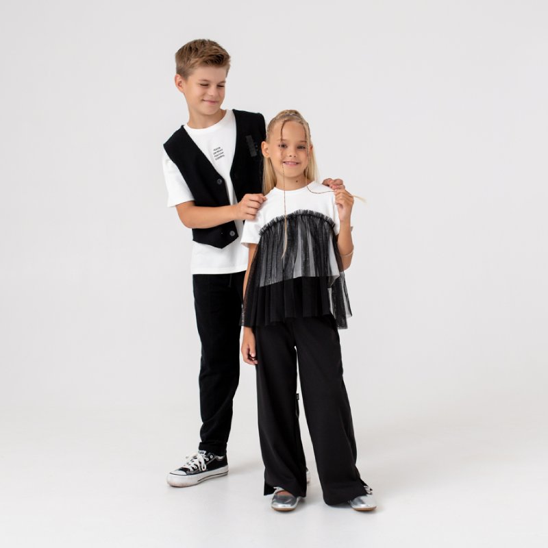 Лаконичный костюм, в котором удобно проводить целый день. Мягкий молочный цвет создаёт ощущение уюта и спокойствия, а продуманный крой не стесняет движений, позволяя ребёнку свободно играть и отдыхать. Материал приятен на ощупь и подходит даже для чувствительной кожи. Такой костюм легко комбинируется с разными вещами, оставаясь стильным и практичным решением для повседневных образов.