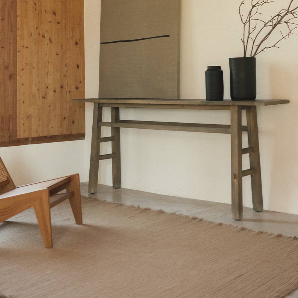 Охра — тёплый, почти горчичный оттенок, который хорошо работает там, где хочется добавить цвета, но не перебрать. Этнический орнамент на таком фоне выглядит живо и по-домашнему, а не как декор из каталога. Ковёр из натурального хлопка, стирается в машинке, сделан вручную — каждый немного отличается от другого, что для ручной работы совершенно нормально.