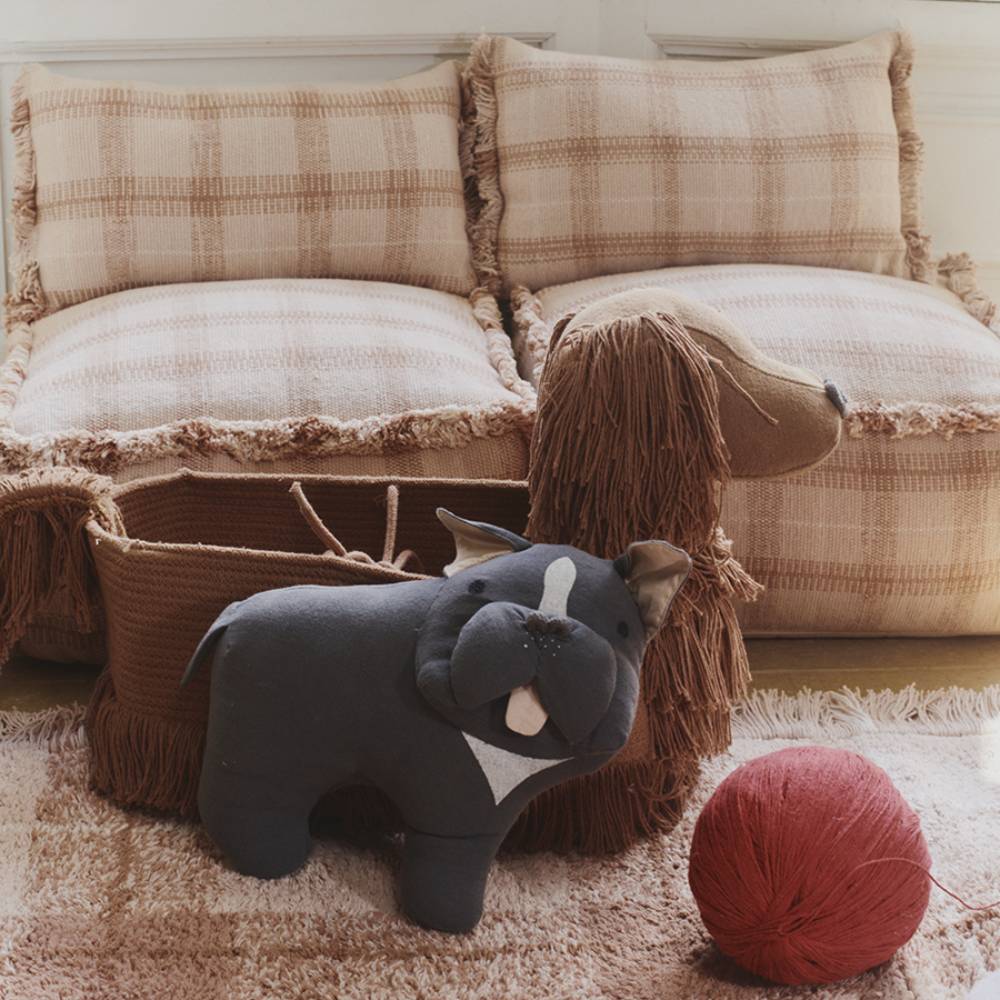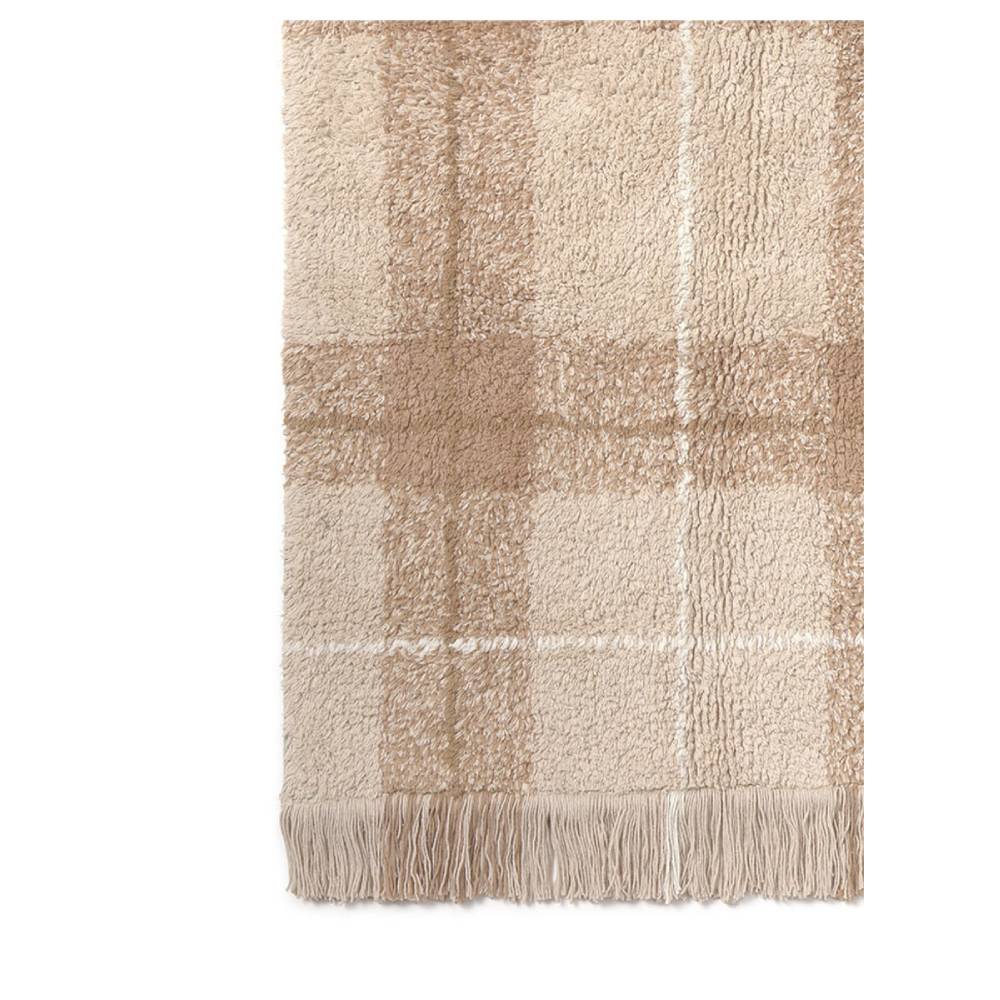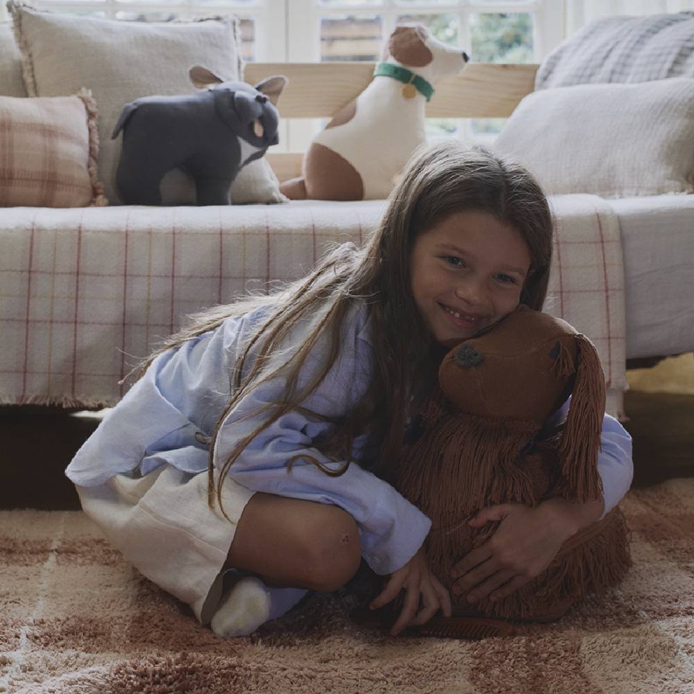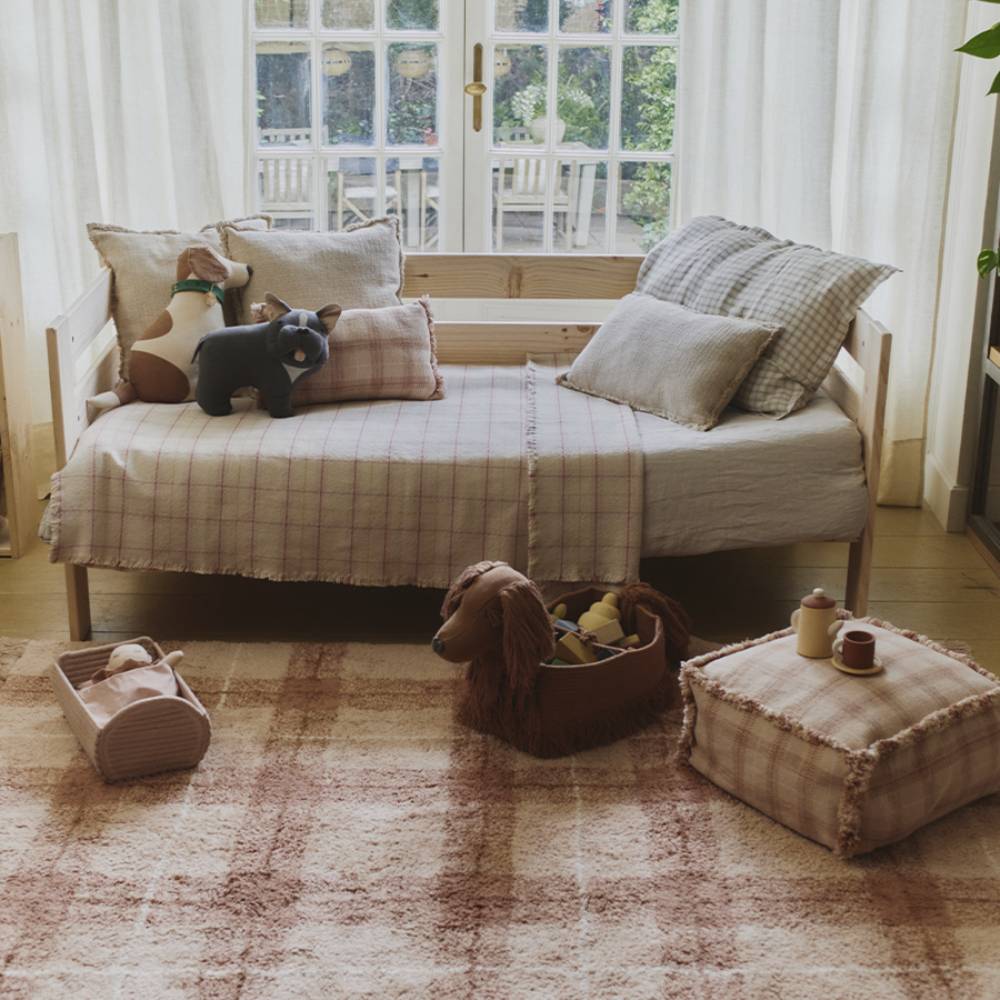 Розовый, но не кричащий — оттенок мягкий, скорее пудровый, и клетчатый рисунок его хорошо уравновешивает. Ковёр из натурального хлопка, сделан вручную, стирается в машинке. Подходит детям с чувствительной кожей — красители натуральные, без резкого запаха. Хорошо смотрится как в новой детской, оформленной с нуля, так и в комнате, которую просто хочется немного обновить.